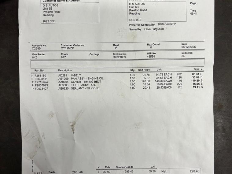 NO VAT - WET BELT DONE - LWB.