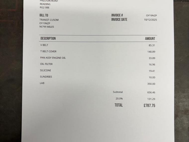 This 2019 Ford Transit Custom 300 Limited boasts a recent full service completed on 2025-12-10 at 96, 799 miles which includes the all important wet belt , ensuring it is ready for its next chapter. This Euro 6 compliant 2.0 EcoBlue diesel van offers a robust 130 bhp engine and a substantial towing weight of 2550 kg. It comes with a 3 month warranty and a 12 month MOT provided on purchase for your peace of mind. The Limited trim level includes desirable features such as the Visibility Pack Premium with rear parking camera, and Seat Pack 25 which incorporates heated driver and passenger seats.With a generous cargo volume of 6200 litres, this Transit Custom is well equipped for a variety of tasks. Parking is made easier with front and rear parking sensors and front fog lamps, complemented by front manual air conditioning for a comfortable cabin environment. The low insurance group rating indicates that running costs are kept competitive, making this Ford Transit Custom an economical and practical choice for your business needs..