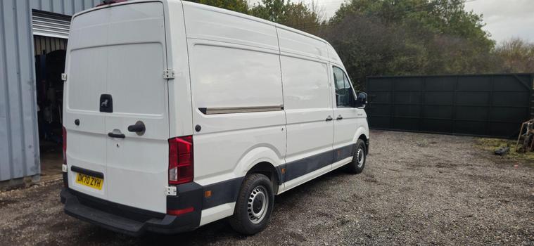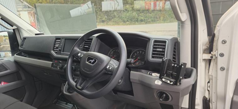 GVW: 3500kg, Seats Fabric, 2 x Airbag, Brake assist, Electr. Stability Programm ESP, Climatronic, Radio navigation system, Cruise control, Voice control system, Heated front seats, Passenger bench 2 persons, LED headlights, Headlight cleaning system, Automatic headlights, Radio with MP3, Digital radiobroadcast DAB+, Multifunctional display, AUX & USB connector, Mobile phone preparation, Lane Departure Warning System LDWS, Front/rear parking assist, Rear view camera, Rain sensor, Multifunctional steering wheel, Board computer, Fog lights, Electr. and heated rear view mirrors, Immobilizer, Central locking with remote control, Heat protection glazing, Partition wall, Loading space floor wood, Rear doors 270° aperture angle, Sliding door rhs, Chrome package, Hill Hold Control HHC, LED daytime running lights, Light Assist, Cornering light, Rubber floor covering, Smoker package, Crosswind assistant, Light sensor, heatable windscreen, Attention assistant, Lashing eyes, Speed limiter, Charging cable mode 2, Errors and Omissi.