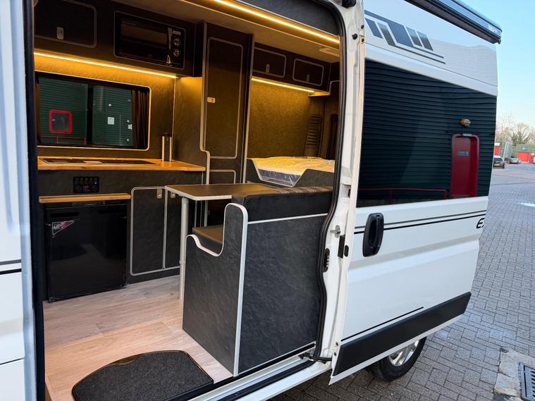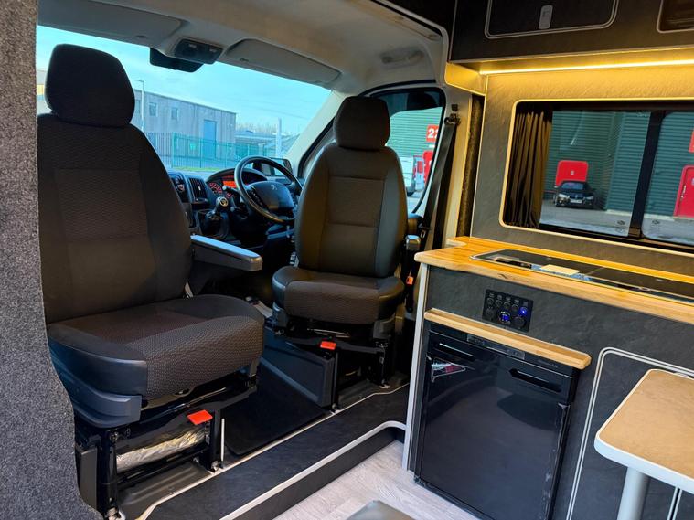 2022 Peugeot boxer 2.2hdi 6 speed manual uro6 140bhp fully ulez compliant Mwb L2H2 van with only 22k this van runs and drives extremely well and has just been serviced and moted. The van itself is in immaculate condition throughout and comes with 2 keys. This is the professional model so comes fully loaded there is NO VAT to pay!!This has also just had a brand new 2 berth conversion with the following: insulated/carpeted, LED lighting, kitchen unit with Oak work top, built-in twin gas hob and sink, LG compressor fridge, 17L microwave, 7kg gas safe, fully black out curtains, leisure battery with Victron DC-DC split charging system, 240v hook up with auto charging, USB sockets, 240v plug sockets, Victron Solar panel system, 2x skylights with blinds, diesel heater system in the rear. Thetford pull out portable toilet, removable table, Thule pull out step, Fiamma F45s wind out awning with LED awning lighting, fixed 4ft/6ft bed with memory foam mattress. The van has plenty of storage..