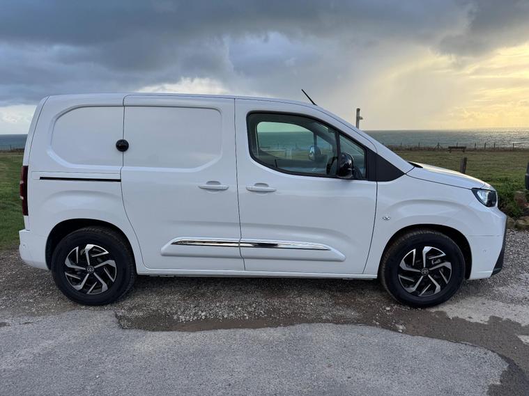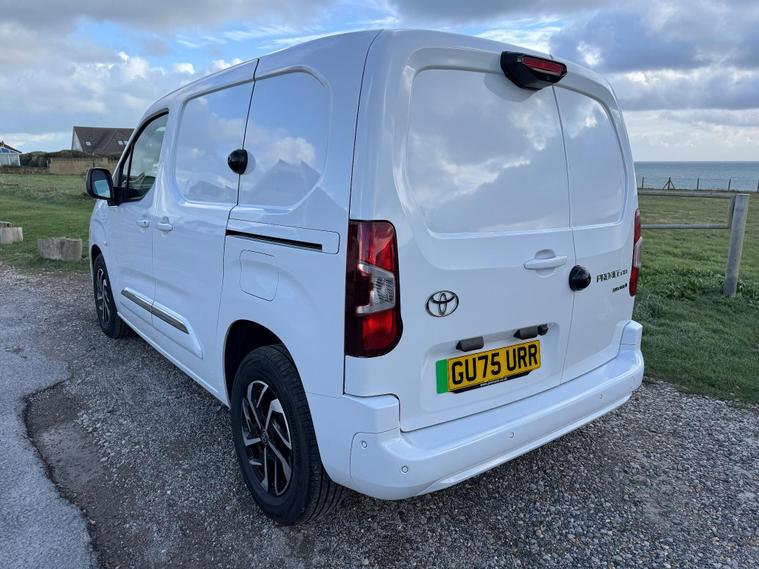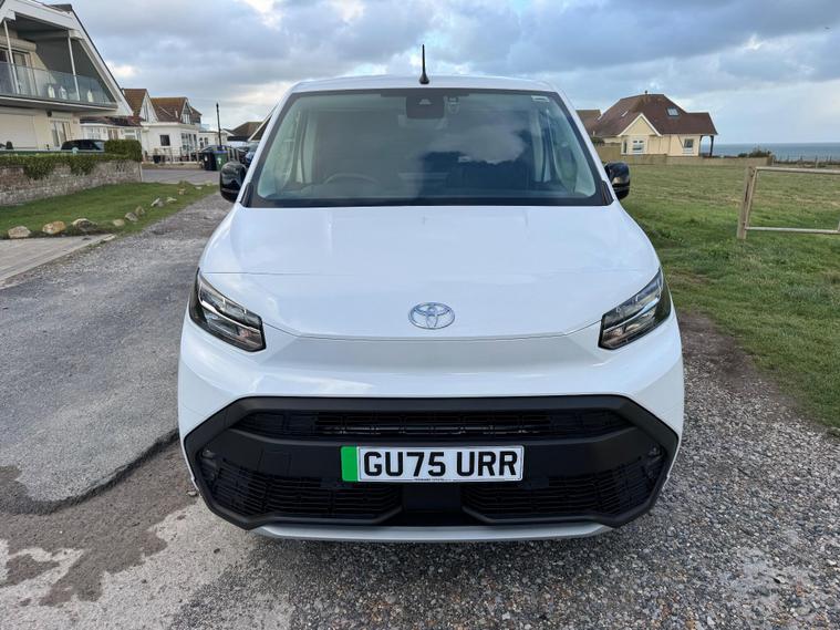 THIS VEHICLE IS FITTED WITH A RARE HEAT PUMP!This 2025 Toyota PROACE CITY 50kWh Sport Short Panel Van Auto SWB 6dr is a Toyota manufacturer approved vehicle with a full dealership service history and only one owner from new. This electric van boasts a 50 kWh battery offering a maximum range of 171 miles. For convenience, it features front and rear parking sensors with parking assistance, a reversing camera, and Bluetooth connectivity.The PROACE CITY Sport derivative is powered by a 134 bhp electric engine, providing a responsive driving experience. Charging is efficient, with a full charge at home taking approximately 7 hours and 30 minutes on a 7kW charger, and a rapid charge to 80% achievable in just 30 minutes at a public charging station. This vehicle comes with a 12 month warranty, ensuring peace of mind for its next owner..