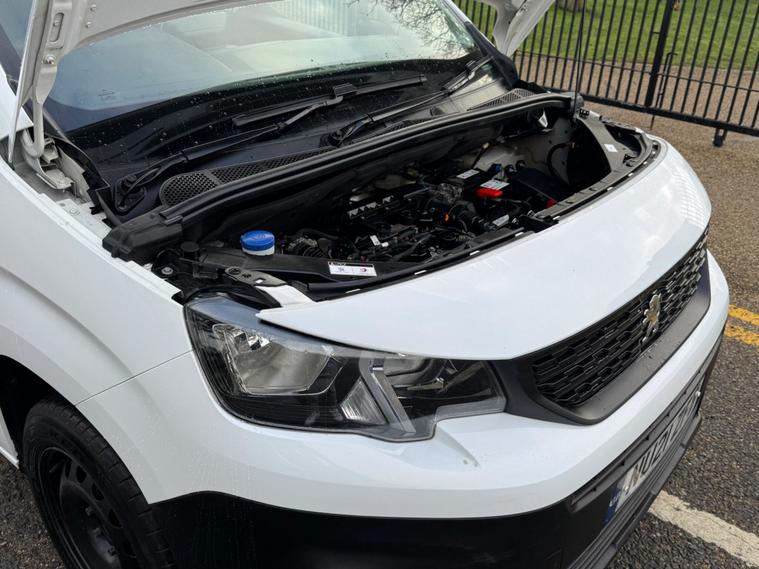 The Peugeot Partner 1.5 BlueHDi 1000 Professional Standard Panel Van SWB Euro 6 5dr is a reliable and efficient commercial vehicle that boasts a rich history. With only one previous owner, this 2021 model has been well cared for and maintained, with a full service history to prove it. The vehicle's MOT is also up to date, providing peace of mind for its next owner. The Partner is equipped with a range of convenient features, including height-adjustable halogen headlights with automatic illumination and daytime running lights, rear parking sensors, and a PEUGEOT i-Cockpit with a head-up display and compact steering wheel. The 8-inch capacitive colour touchscreen offers a range of connectivity options, including Bluetooth, a USB socket, and an auxiliary input. Additionally, the vehicle features air conditioning for a comfortable driving experience.This Peugeot Partner 1.5 BlueHDi 1000 Professional is a top choice for businesses and individuals alike, thanks to its impressive fuel economy of up to 56mpg. With a cargo volume of 3900 litres, it offers ample space for transporting goods and equipment. The vehicle's low CO2 emissions also make it an environmentally friendly option. What's more, the Partner's Euro 6 emission class ensures it meets the latest environmental standards. Whether you're looking for a reliable work vehicle or a practical solution for your business needs, the Peugeot Partner 1.5 BlueHDi 1000 Professional is an excellent choice..