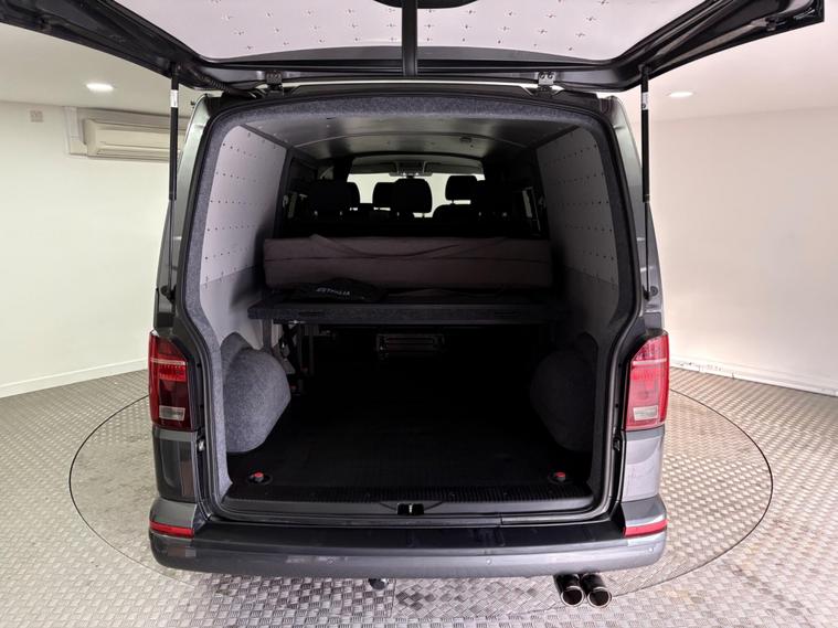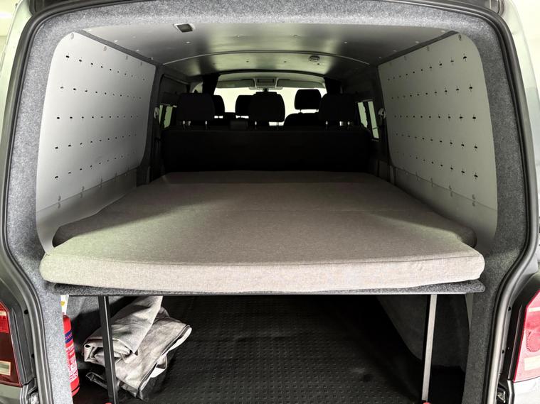 Here we have a very clean example of a well looked after LWB VW Transporter 2.0TDI 150 Manual Highline with tailgate which has 6 seats and a rear double bed conversion and sound proof interior, ideal van for general day to day use or a weekend getaway. Finished in indium grey metallic with black interior trim this van has many upgrades which include diesel heater, running boards, alloy wheels, LED headlights, heated windscreen, bluetooth, DAB radio, cruise control, air con, electric windows and mirrors, westfalia detachable towbar, reversa camera upgrade - sim required, side windows, sliding side door, Kador rail for tent or awning attachment, under bed storage and more. We have receipts for a new power steering pump, EGR cooler, dual mass fly wheel and clutch, cambelt and waterpump changed October 2024 at 99k etc etc. Two keys supplied, MOT until October 2026, fresh oil change to be completed prior to sale. NO VAT. PLEASE CALL 01522972873 FOR MORE INFORMATION..