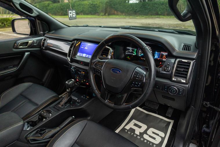 This 2021 Ford Ranger Wildtrak boasts exceptionally low mileage for its age, having covered just 39, 000 miles. This four wheel drive, 2.0 litre EcoBlue diesel model, registered in 2021, is a Euro 6 compliant vehicle with an impressive 210 bhp engine. It offers a substantial towing weight of 3500 kg, making it a capable workhorse. Inside, you'll find comfort features such as heated front seats and manual air conditioning, complemented by dual climate control for personalised comfort. The Wildtrak derivative also includes passive keyless entry and start, along with rear parking sensors for added convenience.The Ford Ranger Wildtrak stands out with its combination of robust performance and thoughtful features. The 210 bhp engine power, coupled with the four wheel drive system, provides excellent capability for various conditions, indicating its superiority over many similar vehicles. The inclusion of heated seats and dual climate control ensures a comfortable driving experience in all seasons, while the passive keyless entry and start system adds a touch of modern convenience. With its low mileage and comprehensive specification, this Ranger is a well presented and highly capable vehicle..