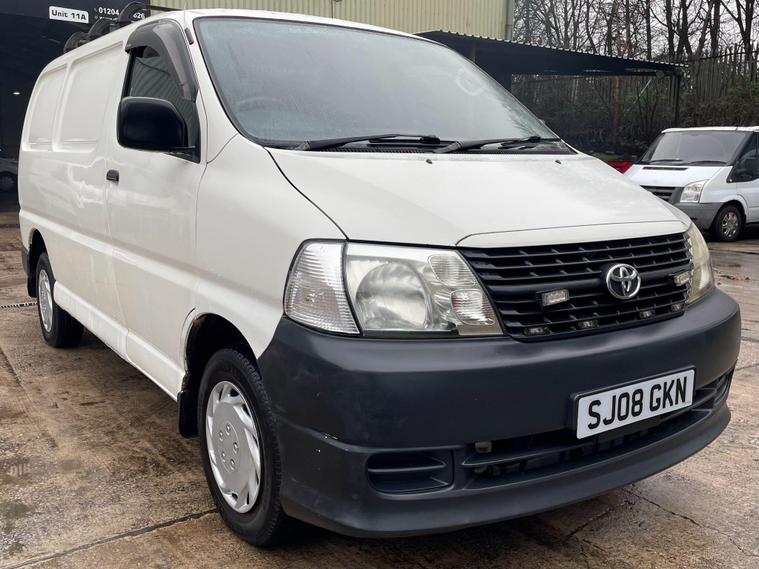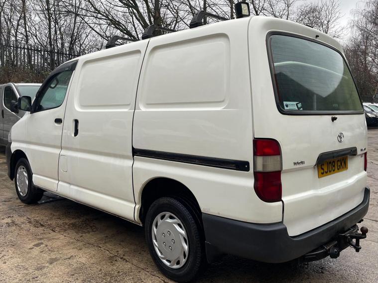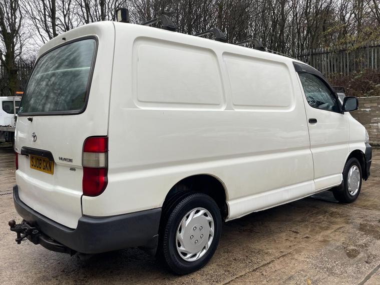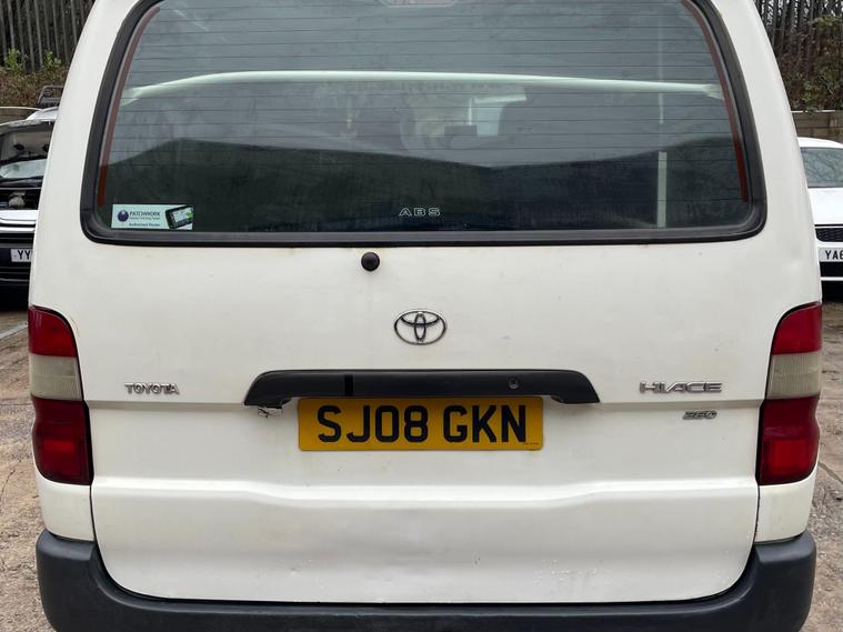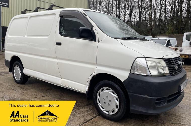 MOT UNTIL 18/01/2027. 3 MONTHS WARRANTY INCLUDED. 12 MONTHS AA BREAKDOWN COVER INCLUDED. ALL INSPECTIONS/TEST DRIVES ARE WELCOME. EXTENDED WARRANTIES FOR UP TO 36 MONTHS AVAILABLE. NATIONWIDE DELIVERY AVAILABLE. ALL PART EXCHANGE VEHICLES ARE CONSIDERED. OPEN 7 DAYS A WEEK. PLEASE CALL US TO DISCUSS FURTHER DETAILS OR VISIT OUR WEBSITE dealer's website 2008 Toyota HiAce presents a clear vehicle history, offering peace of mind for its next owner. This 2.5 280 D-4D RWD L1 H1 4dr model is powered by a robust 2.5 litre diesel engine, delivering a capable 117 brake horsepower. As a 280 D-4D variant, it combines Toyota's renowned reliability with practical performance for a variety of needs.The 117 brake horsepower output of this HiAce's engine signifies a strong performance level, indicating it is well equipped to handle demanding tasks compared to other vehicles in its class. This rear wheel drive model, with its L1 H1 configuration, is designed for efficient operation and utility, making it a sensible choice for those seeking a dependable and well maintained commercial vehicle..