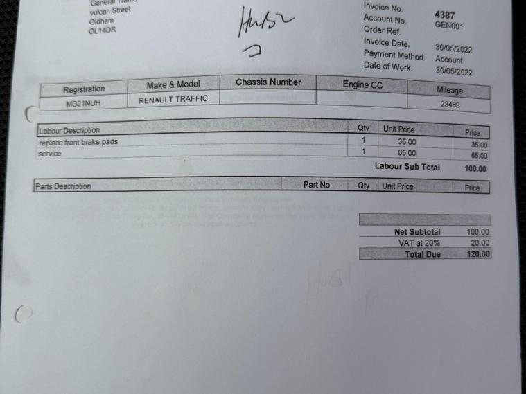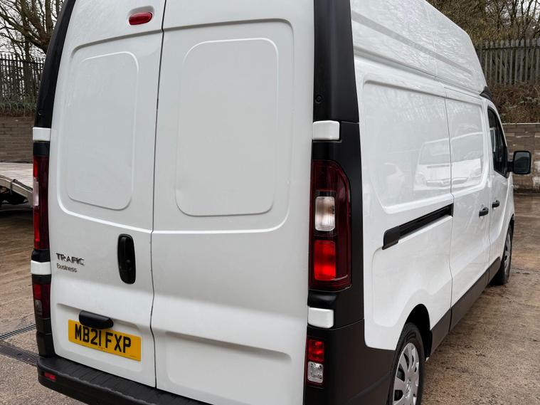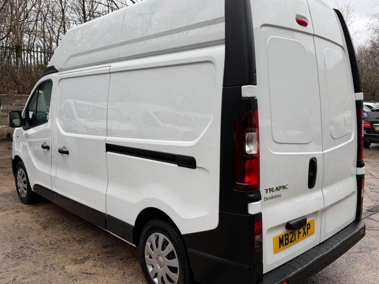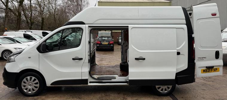 12 MONTHS WARRANTY INCLUDED. 12 MONTHS AA BREAKDOWN COVER INCLUDED. ALL INSPECTIONS/TEST DRIVES ARE WELCOME. EXTENDED WARRANTIES FOR UP TO 36 MONTHS AVAILABLE. NATIONWIDE DELIVERY AVAILABLE. ALL PART EXCHANGE VEHICLES ARE CONSIDERED. OPEN 7 DAYS A WEEK. PLEASE CALL US TO DISCUSS FURTHER DETAILS OR VISIT OUR WEBSITE dealer's website 2021 Renault Trafic presents a superb ownership proposition, having been meticulously maintained by just one owner from new. As a 2.0 dCi ENERGY 30 Business LWB High Roof model, this Euro 6 compliant van is powered by an efficient 2.0 litre diesel engine. It comes equipped with practical features such as rear parking sensors for easier manoeuvring and a DAB radio complete with Bluetooth connectivity, a USB socket, and two 15W speakers, ensuring you stay connected and entertained on the go.The Trafic boasts an impressive cargo volume of 8600 litres, offering substantial space for your business needs, which is a key advantage over many other vans. Furthermore, its 143 bhp engine provides ample power for a smooth and capable driving experience, demonstrating its superior performance capabilities. This combination of generous load capacity and strong engine output makes this Renault Trafic a highly practical and efficient choice for any commercial user..