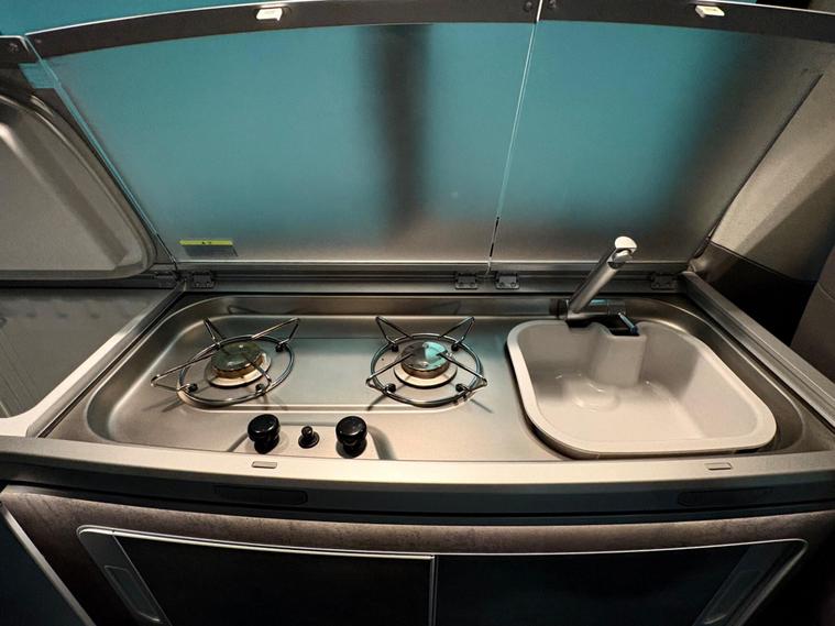 - 230V External Inlet with Charging Feature for Vehicle Batteries and Internal 230V Outlet on the Side of the Kitchen Unit