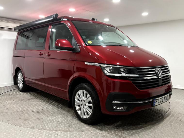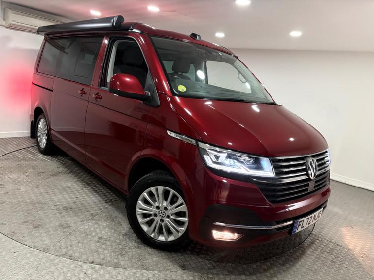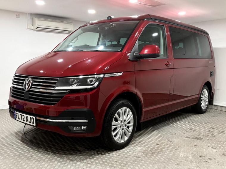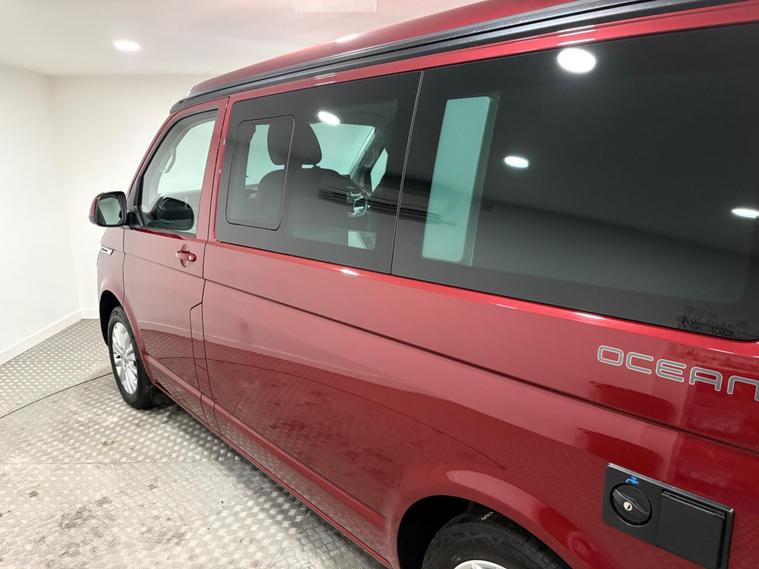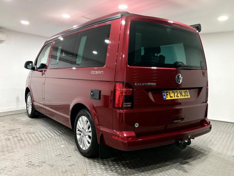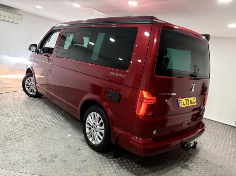 This lovely dark red metallic 2022 Volkswagen California TDI Ocean presents a superb opportunity to own a highly sought after campervan. Fully serviced by VW at 14, 25 and 35k and supplied with 2 keys. This vehicle also has a front and rear dashcam along with towbar. Powered by an efficient 2.0 litre Euro 6 diesel engine, this model offers a refined driving experience. The Ocean trim level ensures a comprehensive suite of features designed for comfort and convenience, including a sophisticated 3 zone Climatronic air conditioning system with an auxiliary heater and an air conditioned headliner, providing exceptional climate control for all occupants. LED headlights with separate LED daytime running lights illuminate your path, while the Adaptive Cruise Control with Front Assist and City Emergency Braking enhances safety and reduces driver fatigue on longer journeys.Navigating tight spaces is made effortless thanks to the integrated parking sensors front and rear, coupled with Park Assist and a rear view camera. These advanced parking assistance systems work together to provide a clear view and help you manoeuvre with confidence. The combination of these thoughtful features, from the advanced climate control to the intelligent driver assistance systems, clearly sets this Volkswagen California TDI Ocean apart from other vehicles in its class, offering a superior blend of practicality and comfort for all your adventures. BE QUICK ON THIS ONE, CALL 01522972873!.