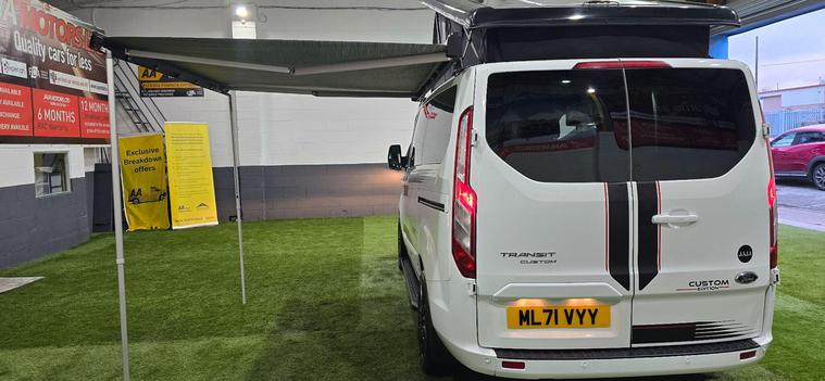 KINDLY WATCH FULL VIDEO, “WHEN ITS GONE ITS GONE'' HERE WE HAVE AN OTHER BRAND NEW CONVERSION & VERY STYLISH CAMPER VAN, PART EXCHANGE WELCOME, FINANCE AVAILABLE, NO VAT, FORD TRANSIT CUSTOM 2.0 300 ECOBLUE LIMITED EDITION, CAMPER-VAN, 5dr DIESEL AUTO L1 H1 EURO 6 (S/S) (130 PS), SWB, CONVERTED TO A VERY HIGH STANDARD, POP TO ROOF WITH BED, 4 BIRTH, 5 SEATS, ROCK AND ROLL BED, PLENTY OF STORAGE, FRIDGE/FREEZER, TWIN BURNER & SINK, MICROWAVE, TV & LED LIGHTS, PLUG SOCKETS, USB CHARGING POINTS, LEISURE BATTERY WITH HOOK UP, GAS & WATER BOTTLE, BONNET DEFLECTOR, SIDE STEPS, LOWER SPLITTER, REMOVABLE DINING TABLE, PRIVACY GLASS ALL AROUND & CURTAINS TO FRONT SIDE WINDOWS AND REAR, FULLY INSULATED, SOUND DEADENED, INVERTER, NIGHT DIESEL HEATER, THE REAR SEATS CONVERT INTO A ROCK AND ROLL BED (WITH UNDER-STORAGE) AND THE FRONT PASSENGER SEATS SWIVEL TO FACE INWARDS PROVIDING A COSY SOCIABLE SPACE, THULE WIND AWNING, BRAND NEW 18 inch Alloy Wheels & TYRES, FULL SERVICE HISTORY, COMES WITH NEW WET BELT, MAINTAINED VERY WELL, 2 KEYS, 6 MONTHS NATIONWIDE WARRANTY WITH AA, 12 MONTHS COMPLEMENTARY BREAK DOWN COVER WITH AA, 12 MONTHS WARRANTY OF ALL APPLIANCES, NEXT MOT DUE 25/12/2026, JUST COVERED 73668 WARRANTED MILEAGE (MOSTLY DONE ON MOTORWAY), PARKING SENSORS, SAT NAV, CRUISE CONTROL, APPLE CarPlay HEATED SEATS AIR CONDITIONING, COMES WITH TV, PORTA POTTI, POP TOP MATTRESS, HOOK UP CABLE, TEST DRIVE HIGHLY RECOMMENDED, RESERVE NOW WITH A FULLY REFUNDABLE DEPOSIT, WE ARE AN FCA REGISTERED DEALER, APPROVED DEALER FOR CAR FINANCE 247 & PEGASUS FINANCE, LOW RATE 0% DEPOSIT FINANCE AVAILABLE, MORE TECHNICAL DETAILS, FEATURES & FINANCE CALCULATION OF THIS CAMPER-VAN, KINDLY VISIT OUR WEBSITE https:/ dealer's website LIVE VIDEO AVAILABLE, NATIONWIDE HOME DELIVERY AVAILABLE (Opt), VIEWINGS BY APPOINTMENT ONLY, BUY WITH CONFIDENCE SEE OUR CUSTOMER REVIEWS, WE ARE OPEN 7 DAYS A WEEK CALL OR TEXT *** 01274914613 *** ANY TIME***THIS CAMPER-VAN IS HPI ALL CLEAR..
