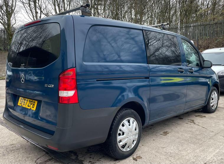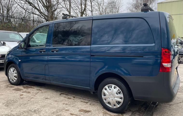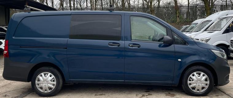 12 MONTHS WARRANTY INCLUDED. 12 MONTHS AA BREAKDOWN COVER INCLUDED. ALL INSPECTIONS/TEST DRIVES ARE WELCOME. EXTENDED WARRANTIES FOR UP TO 36 MONTHS AVAILABLE. NATIONWIDE DELIVERY AVAILABLE. ALL PART EXCHANGE VEHICLES ARE CONSIDERED. OPEN 7 DAYS A WEEK. PLEASE CALL US TO DISCUSS FURTHER DETAILS OR VISIT OUR WEBSITE dealer's website this 2017 Mercedes Benz Vito 1.6 111 CDI Crew Van, a robust and reliable choice for your business needs. This L3 XLWB model, powered by an efficient 1.6 litre diesel engine, offers ample space and practicality. It comes equipped with Bluetooth connectivity, allowing for both hands free telephone calls and audio streaming, ensuring you stay connected and entertained on the go.This Vito stands out with its thoughtful features designed to enhance your driving experience. The inclusion of Bluetooth technology highlights its modern convenience, making it a superior option for those seeking seamless integration of their devices. Its spacious crew van configuration and long wheelbase provide exceptional versatility for a variety of commercial applications..
