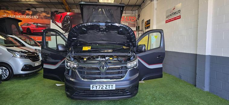 KINDLY WATCH FULL VIDEO, NO VAT “WHEN ITS GONE ITS GONE'' HERE WE HAVE AN OTHER BRAND NEW CONVERSION & VERY STYLISH CAMPER VAN, PART EXCHANGE WELCOME, FINANCE AVAILABLE, RENAULT TRAFIC 2.0 dCi BLUE SL28 BUISNESS CAMPERVAN 5DR DIESEL MANUAL EURO 6 (S/S) (150 PS), SWB, CONVERTED TO A VERY HIGH STANDARD, POP TO ROOF WITH BED, 4 BIRTH, 5 SEATS, VULCAN M1 CRASH TESTED RECLINER ROCK AND ROLL BED, 50L FRIDGE/FREEZER, DOMETIC TWIN BURNER GAS HOB & SINK, MICROWAVE, TV & LED LIGHTS, CO2 DEVICE, VICTRON ORION SPLIT CHARGER, PLUG SOCKETS, USB CHARGING POINT, LEISURE BATTERY, EXTERNAL 240v HOOK UP, GAS BOTTLE WITH LOCKER & COMES WITH SAFETY CERTIFICATE, WATER BOTTLE, REMOVABLE DINING TABLE, PRIVACY GLASS ALL AROUND & CURTAINS TO FRONT SIDE WINDOWS AND REAR, FULLY INSULATED, SOUND DEADENED, SOLAR PANEL, INVERTER, HIGH QUALITY YILKAR NIGHT DIESEL HEATER, PARQUET FLOORING, CBE ELECTRIC TOUCH SCREEN CONTROL PANEL KIT, READING LIGHT, THE REAR SEATS CONVERT INTO A ROCK AND ROLL BED (WITH UNDER-STORAGE) AND THE FRONT PASSENGER SEAT SWIVEL TO FACE INWARDS PROVIDING A COSY SOCIABLE SPACE, FULL SERVICE HISTORY, MAINTAINED VERY WELL, 6 MONTHS NATIONWIDE WARRANTY WITH AA, 12 MONTHS COMPLEMENTARY BREAK DOWN COVER WITH AA, 12 MONTHS WARRANTY OF ALL APPLIANCES, NEXT MOT DUE 02/12/2026, JUST COVERED 52247 WARRANTED MILEAGE (MOSTLY DONE ON MOTORWAY), 2 KEYS, ONLY 1 PREVIOUS OWNER, DAB, RADIO, BLUETOOTH, USB, PORTA POTTI, POP TOP MATTRESS, HOOK UP CABLE, MANY MORE FEATURES, TEST DRIVE HIGHLY RECOMMENDED, RESERVE NOW WITH A FULLY REFUNDABLE DEPOSIT, MORE TECHNICAL DETAILS & FEATURES KINDLY VISIT OUR WEBSITE https:/ dealer's website VIEWINGS BY APPOINTMENT ONLY, BUY WITH CONFIDENCE SEE OUR CUSTOMER REVIEWS, NATIONWIDE HOME DELIVERY AVAILABLE (Opt), WE ARE OPEN 7 DAYS A WEEK CALL OR TEXT *** 01274914613 *** ANY TIME***THIS CAMPER-VAN IS HPI ALL CLEAR.