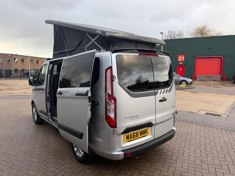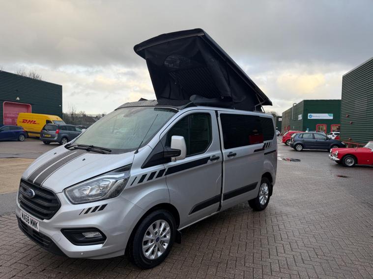 Ford transit custom 2.0tdci 6 speed manual uro6 fully ulez compliant swb one owner van with only 23k this custom runs and drives very well and is in stunning condition throughout. There is great service history with the van (7 services) and comes with mot till August 2026 the van also comes with 2 keys. This is a Trend model so comes with very good spec. This custom has just had a brand new 4 berth camper conversion done to a great standard with the following, fully insulated / carpeted, full length kitchen unit with built in Smev dometic 9222 sink and hob unit, 50L compressor fridge, Gas safe, LED lighting, Victron DC to DC split charger system with leisure battery, 240v hook up with built in battery charger, 240v plug sockets, usb sockets, diesel heat system, Passengers M1 swivel seat bace, Skyline pop top with scenic canvas, removable table, black out curtains, M1 rock n roll bed making this a 5 seater van. This truly is a stunning camper van that is ready to explore. HERE AT TOTAL AUTOMOTIVE LTD WE ARE A RECOMMENDED, TRUSTED DEALER BY THE AA AND ARE AN AWARD WINNING GARAGE FOR ‘HIGHLY RATED CUSTOMER SERVICE 2025’ WITH AUTOTRADER.ALL PART X WELCOME, 3 MONTHS AUTOGARD WARRANTY, Award-winning EXTENDED WARRANTS also available, VIEWINGS AVAILABLE 6 DAYS A WEEK SUNDAYS CLOSED, WE CAN ALSO ARRANGE FINANCE, PAYMENTS TO BE MADE VIA BANK TRANSFER.WE ARE LOCATED NEWBURY BERKSHIRE. Please check our website for more stock..
