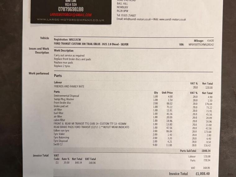 This 2021 Ford Transit Custom Trail boasts a full service history, with its last service completed on 2025-03-22 at 58191 miles, offering excellent provenance for this one owner vehicle. As a 2.0 300 EcoBlue Trail L1 H1 Euro 6 model, it features a robust 2.0 litre diesel engine delivering 130 bhp. This Trail derivative comes equipped with a host of practical features including a rear view camera with trailer hitch assist, front and rear parking sensors, and a towbar. The Visibility Pack and ICE Pack 24 with SYNC3 audio and navigation, compatible with Android Auto and Apple CarPlay, enhance the driving experience. Comfort is assured with front manual air conditioning and automatic headlights with a follow me home function.This Ford Transit Custom Trail offers impressive efficiency, achieving a highlight of 44 mpg, and benefits from a low insurance group, making it an economical choice. The 12 months MOT provided on purchase and the remaining 3 months warranty offer further peace of mind. These highlights demonstrate how this Transit Custom Trail stands out from similar vehicles, providing a well maintained and feature rich option for your needs..