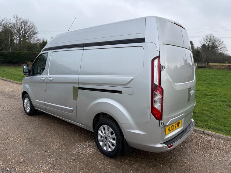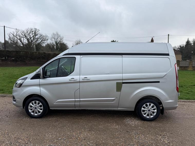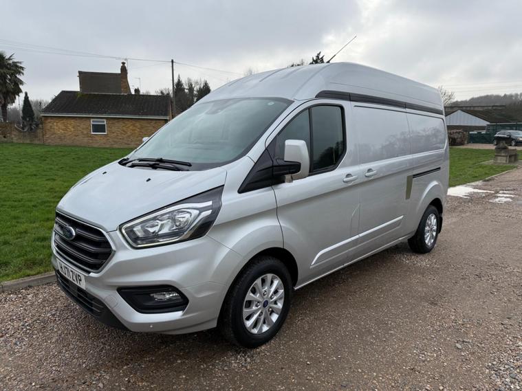 NO VAT TO PAY ON THIS LOVELY LOW MILEAGE TRANSIT CUSTOM LIMITED IN METALLIC SILVER WITH FULL SERVICE HISTORY, RARE IN LONG WHEEL BASE AND HIGH ROOF, LIMITED SPEC INCLUDING SAT NAV, DAB RADIO, BLUETOOTH, CRUISE CONTROL, AIR CON, HEATED SEATS, ALLLOYS, PARKING SENSORS, FULLY PLY LINED REAR WITH SOLID DOOR, SIDE LOADING DOORS, TWIN REAR DOORS, WILL COME FULLY SERVICED AND WET BELT REPLACED OCTOBER 2025, 3 MONTHS WARRANTY INCLUDED.