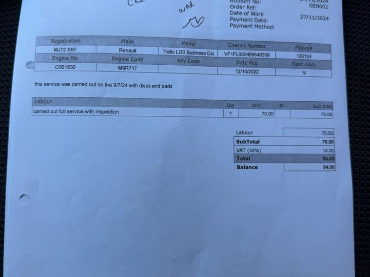 12 MONTHS WARRANTY INCLUDED. 12 MONTHS AA BREAKDOWN COVER INCLUDED. ALL INSPECTIONS/TEST DRIVES ARE WELCOME. EXTENDED WARRANTIES FOR UP TO 36 MONTHS AVAILABLE. NATIONWIDE DELIVERY AVAILABLE. ALL PART EXCHANGE VEHICLES ARE CONSIDERED. OPEN 7 DAYS A WEEK. PLEASE CALL US TO DISCUSS FURTHER DETAILS OR VISIT OUR WEBSITE dealer's website 2022 Renault Trafic presents a superb ownership proposition, having been meticulously maintained by just one owner from new. This Business L2 H1 model, powered by an efficient 2.0 litre dCi Blue Euro 6 diesel engine, offers a generous cargo volume of 7800 litres, making it an ideal choice for businesses requiring substantial load space. It comes equipped with modern conveniences such as full LED headlights featuring distinctive C-shape daytime running lights, and a DAB radio system complete with Bluetooth connectivity, a USB socket, and an AUX input for all your entertainment and communication needs.The Trafic's Business trim level ensures practicality and functionality are at the forefront. The inclusion of LED headlights not only enhances visibility during nighttime driving but also contributes to the vehicle's contemporary appearance. Furthermore, the integrated DAB radio with Bluetooth and multiple input options provides a seamless audio experience, setting this Trafic apart from others that may lack such comprehensive connectivity. This combination of a single owner, impressive cargo capacity, and well appointed features makes this Renault Trafic a compelling and capable van..