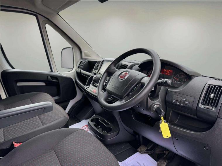Boasting exceptionally low mileage for its 2023 registration, this Fiat Ducato 2.2 MultijetIII 35 Business Pro L H2 Euro 6 is a prime example of a well maintained commercial vehicle. With a full dealership service history, most recently serviced at 22, 000 miles on 29 January 2026, and a clear vehicle history check, you can be assured of its excellent provenance. This Business Pro model comes equipped with a 2.2L Euro 6 diesel engine, offering efficient performance. Notable features include rear parking sensors and a reverse warning speaker for easier manoeuvring, a 7in DAB radio with Bluetooth, USB connectivity, navigation, and seamless integration with Apple CarPlay and Android Auto. For driver comfort, it also features manual air conditioning.This Fiat Ducato stands out with its impressive 13, 000 litre cargo volume, providing ample space for your business needs. The very low mileage of just 22, 000 miles for its age indicates it has been used sparingly, suggesting less wear and tear compared to other similar vehicles on the market. Furthermore, its low insurance group rating means that running costs are kept to a minimum, making it an economically sound choice. A 12 month warranty and a 12 month MOT provided on purchase offer additional peace of mind..