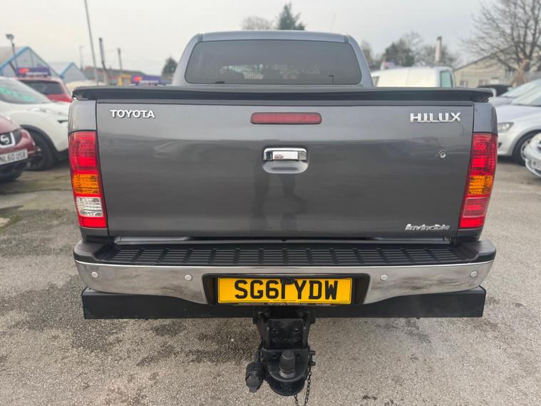 dealer's website ESTABLISHED 1991 FOR MORE VAT FREE PICKUPS AND VANS AT AFFORDABLE PRICES.This 2011 Toyota Hilux Invincible 4x4 D-4D DCB presents a compelling proposition with its remarkably low mileage for its age, having covered just 96, 000 miles. As a robust Invincible variant, this double cab pickup is equipped with a powerful 3.0L Diesel engine and Four Wheel Drive capability, ready for any challenge. Its provenance is further assured with a clear vehicle history check and a 3 month warranty for your peace of mind. Inside, you'll find comfort and convenience with Automatic Air Conditioning featuring climate control, and the ease of a Rear View Camera complete with parking assistance. The Dusk Sensor ensures your headlights activate automatically, while Bluetooth Connectivity keeps you connected on the go.This Hilux Invincible stands out with several key highlights that set it apart. Its impressive fuel economy of 37 mpg is a significant advantage, offering greater efficiency than many comparable vehicles. Furthermore, its low CO2 emissions contribute to a more environmentally conscious drive. The low insurance group rating also indicates that running costs are kept to a minimum, making this a sensible choice for both personal and professional use. With its partial service history, this vehicle has been maintained, offering a reliable and capable package..