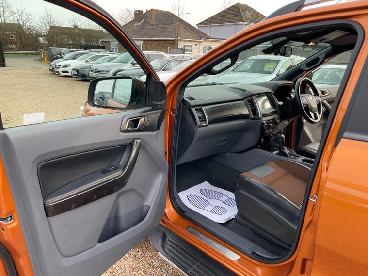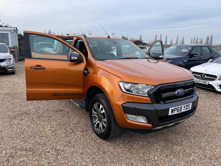 NO VAT, 12 MONTHS NATIONWIDE WARRANTY, ZERO DEPOSIT FINANCE AVAIL, 1 Former keeper, 2 Keys avail, Just been serviced, Hpi clear, all previous Mot's avail. We are located in CANVEY ISLAND, ESSEX SS8 0QDThis 2018 Ford Ranger 3.2 TDCi Wildtrak Auto 4WD Euro 5 4dr is a robust and capable vehicle, ready for any challenge. Powered by a strong 3.2 litre diesel engine and featuring a reliable four wheel drive system, this Ranger is built for performance. It boasts a substantial towing weight of 3500 kg, making it ideal for heavy loads. Inside, you'll find comfort and convenience with dual zone electronic automatic air conditioning, heated front seats, and a rear view camera for easier parking. Stay connected on the go with both Bluetooth handsfree phone system and audio streaming capabilities.The Wildtrak trim level of this Ford Ranger offers a superior driving experience compared to other similar vehicles. The inclusion of heated seats and dual zone climate control ensures comfort for all occupants, regardless of the weather. Furthermore, the advanced Bluetooth system for both calls and music, along with the practical rear view camera, enhances the overall usability and enjoyment of this already impressive four wheel drive pickup..
