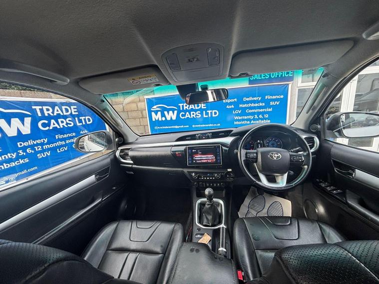 NO VAT, FULL SERVICE HISTORY, JUST SERVICED FROM TOYOTA 12 MONTHS TOYOTA WARRENTY, SAT NAV, FULL LEATHER INTERIOR, PARKING CAMERA, HPI CLEAR, ANY INSPECTION WELCOME, FINANCE OPTIONS AVAILABLE REPRESENTATIVE EXAMPLE 9.7 APR, WE ARE A CREDIT BROKER NOT A LENDER FOR FURTHER INFORMATION PLEASE NAVIGATE TO OUR WEBSITE www. dealer's website AND CLICK ON THE FINANCE TAB. OR CONTACT US ON 01384670618.With only one owner and an exceptionally low mileage of 16, 000 miles for its 2018 registration, this Toyota Hilux 2.4 D-4D Invincible 4WD Euro 6 (s/s) 4dr presents a remarkable find. As a four wheel drive model, it is equipped with a robust 2.4 litre diesel engine and meets Euro 6 emission standards. This Invincible trim level boasts a clear vehicle history check and is capable of towing up to 3500 kg. Notable features include LED headlights, automatic headlights, a reversing camera for easier parking, and automatic air conditioning for a comfortable cabin environment. Bluetooth connectivity is also included, allowing for seamless integration of your devices.NO VAT, FSH, JUST SERVICED WITH TOYOTA 12 MONTHS TOYOTA WARRENTY This particular Toyota Hilux stands out with its impressive fuel economy, achieving up to 40 miles per gallon, and its low CO2 emissions, indicating a more environmentally conscious choice compared to many similar vehicles. The very low mileage for its age, coupled with having only one owner, suggests this vehicle has been exceptionally well cared for and lightly used. These factors combined highlight its superior condition and value, making it a compelling option for anyone seeking a dependable and capable four wheel drive vehicle..