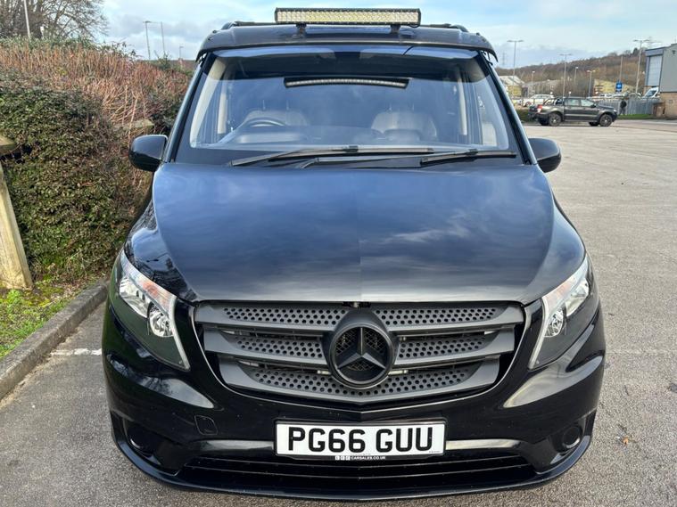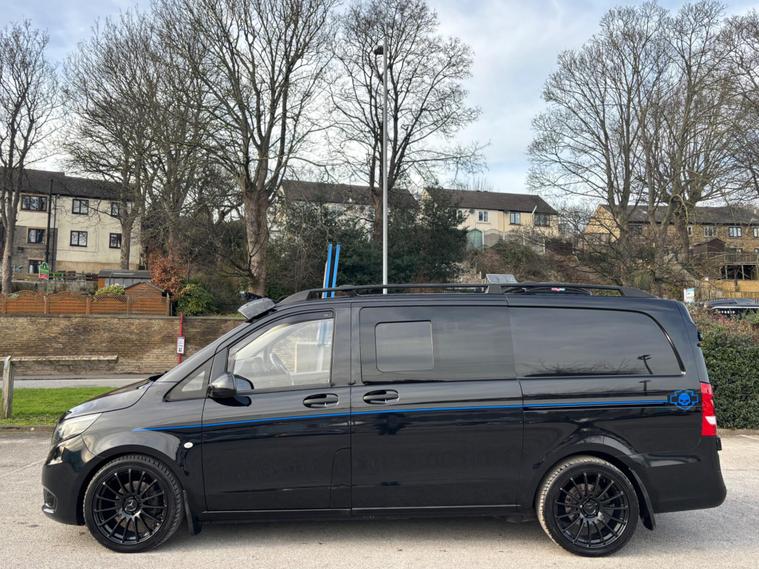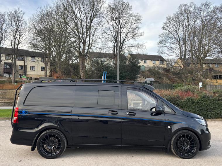 WE ARE PLEASED TO OFFER THIS HIGHLY DESIRABLE HIGH SPECIFICATION HIGHLY MAINTAINED TRULY STUNNING RARE LOW MILEAGE OWNERSHIP EURO SIX TWO BERTH MERCEDES-BENZ VITO 2.1 116 CDI BLUETEC SIX DOOR DIESEL MANUAL RWD L2 CAMPER VAN + FINISHED IN THE BEST COLOUR OF OBSIDIAN BLACK METALLIC PAINTWORK WITH COLOUR CODED BUMPERS , 19'' MULTI SPOKE ALLOY WHEELS FINISHED IN GLOSS BLACK + ONLY A MERE 53, 308 MILES HAS BEEN COVERED IN TOTAL BY TWO OWNERS + LAST OWNER SINCE FOUR MONTHS OLD AND IS BACKED WITH AN EXCELLENT SERVICE HISTORY + THE SERVICES HAVE BEEN CARRIED OUT AT 5397 MILES, 16294 MILES, 20818 MILES, 24596 MILES, 30651 MILES, 36809 MILES, 44830 MILES AND 52981 MILES + THE MOT IS TILL THE 22ND OF JANUARY 2027 + EXCEPTIONAL CONDITION THROUGHOUT AND DRIVES SUPERB + 163 BHP MODEL + FULL SPECIFICATION WHICH INCLUDES ROCK N ROLL BED / SIDE SLIDING DOORS WITH WINDOWS / SOLAR PANELS / FRONT ROOF LIGHT . MAX WAVE FAN HEATING / BIKE RACK / TOW BAR / FULL ELECTRIC PACK / REAR PARKING DISTANCE CONTROL / BLUETOOTH HANDS FREE PHONE PACK / CRUISE CONTROL PLUS MUCH MORE + HANDBOOK PACK + DIGITAL SERVICE HISTORY WITH INVOICES AND RECEIPTS + ANY TRIAL OR INSPECTION IS WELCOMED + HPI CLEAR WITH CERTIFICATE + SIX MONTHS NATIONWIDE WARRANTY IS INCLUDED + MERCEDES-BENZ BUILD QUALITY + VIEWING IS ESSENTIAL TO APPRECIATE THIS CLEAN AIR ZONE FRIENDLY CAMPER. We have been established in Baildon for over 20 years. All our vehicles are fully inspected, prepared and valeted. We are finance specialists. Part exchange is welcome. All major credit and debits accepted. Open 7 days. Our postcode is BD177EX..