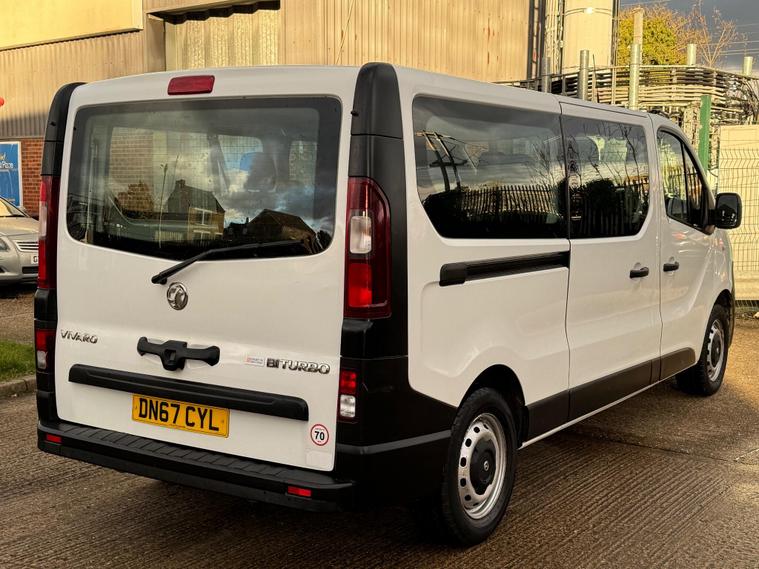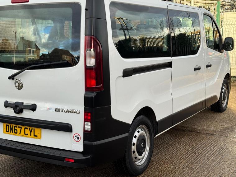 Discover this 2017 Vauxhall Vivaro 1.6 CDTi 2900 BiTurbo ecoTEC L2 H1 Euro 6 (s/s) 5dr (9 Seat), a versatile vehicle designed for practicality and efficiency. This model boasts a 1.6 litre diesel engine and meets Euro 6 emission standards. Inside, you'll find a facia mounted 12 volt accessory socket for convenience, alongside manually foldable electrically adjustable and heated door mirrors. Safety is enhanced with an ABS Anti-Lock Braking System, and the nearside blind spot junction mirror located in the front passenger sun visor, which includes Blind Spot Assistance, offers added peace of mind.This Vauxhall Vivaro offers excellent running costs, achieving an impressive fuel economy of 50 miles per gallon. Its low CO2 emissions further contribute to its economical profile, and it benefits from a low insurance group, making it a cost effective choice. These highlights demonstrate how this Vivaro stands out from other vehicles in its class, offering a compelling combination of performance, safety, and affordability.In conclusion, a great vehicle offering cheap running costs and versatility, drives great, any inspection welcome, part exchange considered, card payments accepted, please contact us for further information.