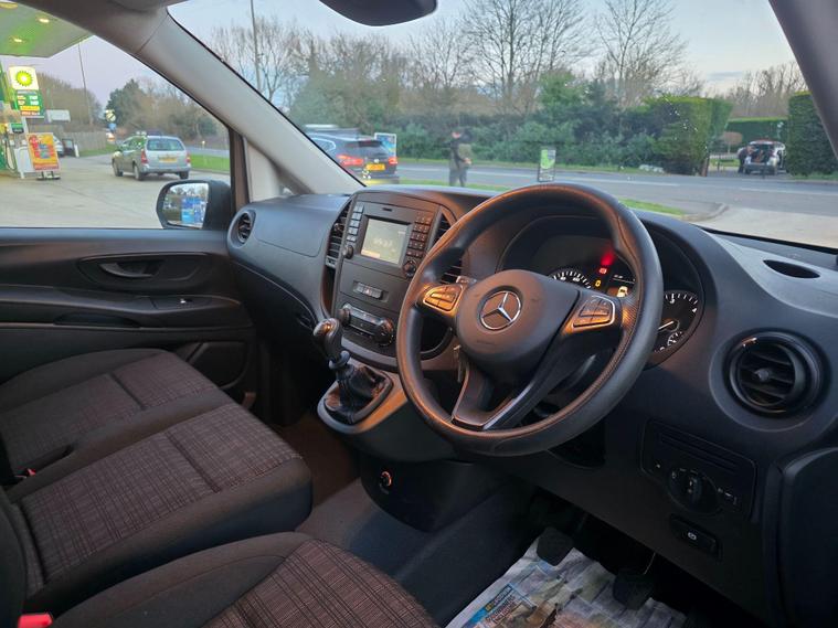 This 2018 Mercedes Benz Vito 111 CDI is a well maintained example, ready for its next owner. This front wheel drive L2 model boasts a 1.6 litre diesel engine, compliant with Euro 6 emissions standards, making it an efficient choice for your business needs. Its spacious interior offers a generous cargo volume of 6300 litres, providing ample room for all your equipment and goods.With an impressive fuel economy of 46 miles per gallon, this Vito is designed to keep running costs down. Furthermore, its low insurance group rating indicates that it is more economical to insure than many comparable vehicles. This combination of practical features and cost saving benefits makes the Mercedes Benz Vito 111 CDI a smart and capable van..
