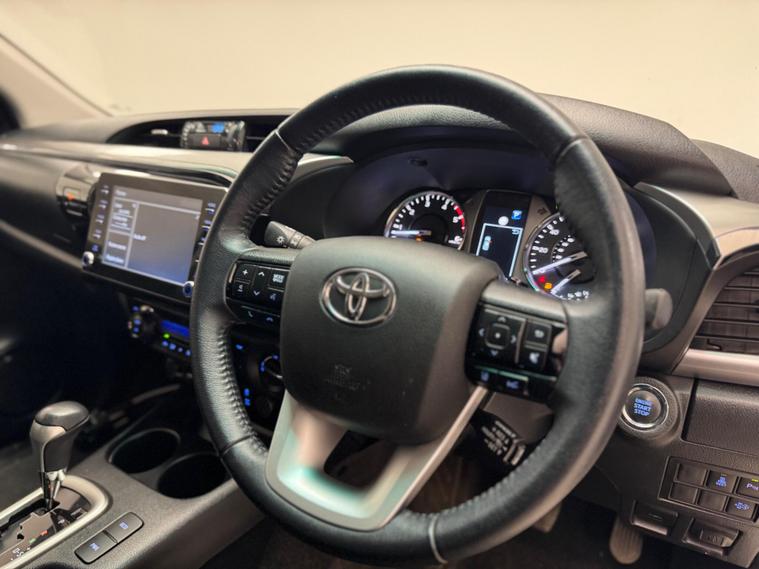 Boasting exceptionally low mileage for its 2023 registration, this single owner Toyota Hilux 2.4 D-4D Invincible Auto 4WD Euro 6 (s/s) 4dr presents a remarkable find. Powered by a robust 2.4 litre diesel engine and featuring a capable four wheel drive system, this Invincible variant is built for adventure and utility. It meets Euro 6 emissions standards and offers a substantial towing weight of 3500 kg. Inside, you'll appreciate the convenience of the Smart Entry and Smart Start System, dual zone automatic air conditioning for personalised comfort, and intelligent adaptive cruise control for relaxed journeys. Parking is made easier with the rear view camera, and the heated front seats ensure warmth on colder days.This particular Hilux stands out with its impressive combination of features and condition. The low mileage of just 26348 miles, coupled with having only one owner, suggests it has been meticulously cared for and lightly used. The Invincible trim level signifies a high specification, offering a superior experience compared to other models. The inclusion of advanced technology like intelligent adaptive cruise control and the practical rear view camera further enhance its appeal, making it a well equipped and desirable choice for those seeking a dependable and feature rich four wheel drive vehicle..