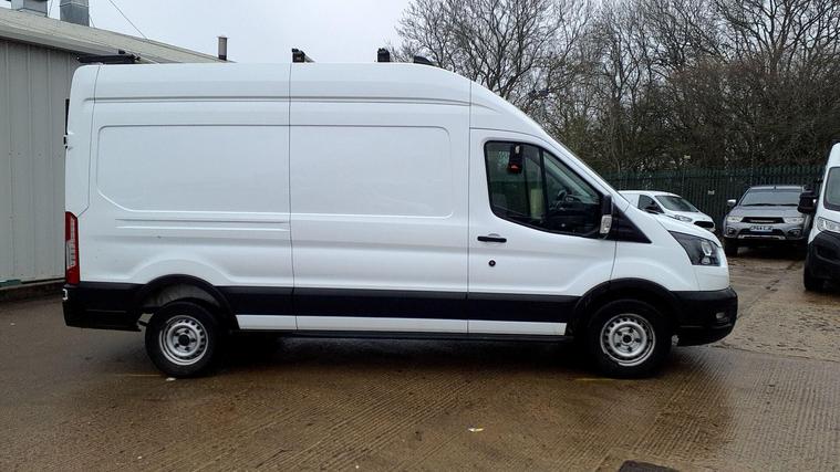 This 2023 Ford Transit 2.0 350 EcoBlue Leader FWD L3 H3 Euro 6 (s/s) 5dr boasts a full service history, with its last service completed at 61093 miles on 28 February 2026, and has had only one owner from new. This robust 350 Leader variant is powered by an efficient 2.0L Diesel Euro 6 engine and offers a substantial towing weight of 2800 kg. It comes equipped with the Basics Pack 2, featuring front and rear parking sensors for enhanced manoeuvrability, and a 4.2in Monochrome TFT screen with the new SYNC 4 system, including Bluetooth connectivity. Additionally, the door mirrors are fitted with blind spot eliminators and integrated side indicators, incorporating Blind Spot Assistance for added safety.The inclusion of these features, such as the advanced SYNC 4 system and comprehensive parking assistance, demonstrates a higher specification than many comparable vehicles. This Transit also benefits from a 3 month warranty and a 12 month MOT provided on purchase, ensuring peace of mind for its next owner. With its well documented service history and single owner provenance, this Ford Transit is a practical and reliable choice for a variety of professional needs.arking Sensors (Front And Rear), Front Fogs, Engine Bay Condition (Not Applicable), Phone (Bluetooth), Audio (DAB Radio), Multi Func Steering wheel, Side Mirrors (Manual), Transmission (Manual), Trim Type (Cloth).