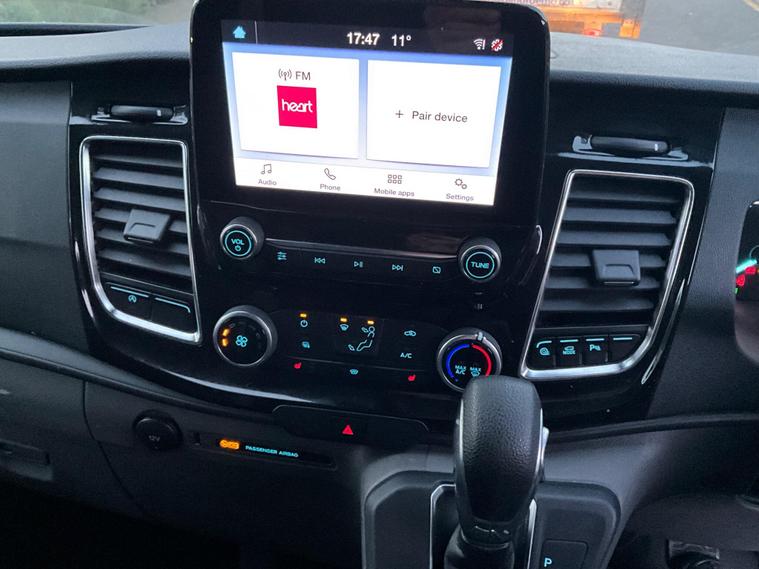 This 2021 Ford Transit Custom offers peace of mind with a clear vehicle history check. This 2.0 300 EcoBlue Limited Auto L2 H1 Euro 6 (s/s) 5dr model, a 300 Limited variant with the desirable Limited trim, is powered by an efficient 2.0 litre diesel engine and meets Euro 6 emissions standards. It comes equipped with Seat Pack 25, which includes heated seats for added comfort, and parking assistance for both the front and rear, complemented by front fog lamps. Automatic headlights with a follow me home function and the ICE Pack 21 featuring SYNC3 audio with Android Auto and Apple CarPlay are also included, alongside front manual air conditioning.The generous 6200 litre cargo volume of this Transit Custom makes it a practical choice for a variety of needs, indicating its superior capacity compared to similar vehicles. The inclusion of front and rear parking sensors, automatic headlights, and the advanced SYNC3 infotainment system with smartphone integration further enhance its appeal, demonstrating how this particular model offers a more convenient and connected driving experience than standard offerings..