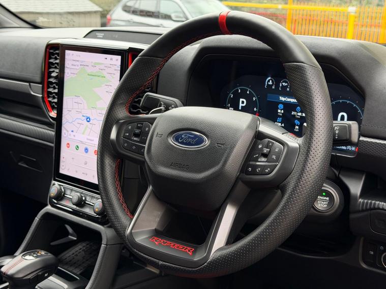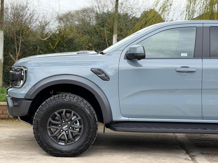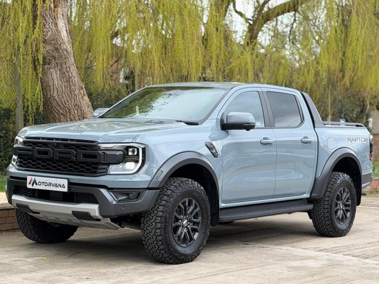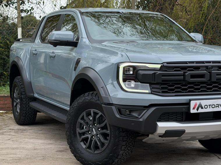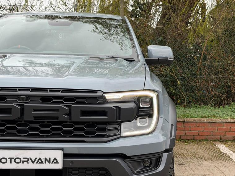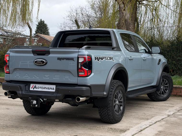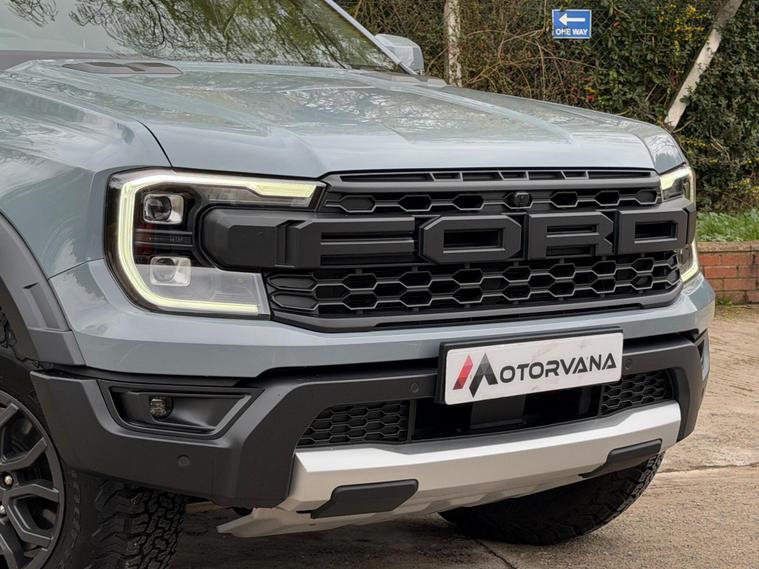 This Ford Ranger 3.0T V6 Raptor Auto 4WD Finished in Azure Grey and this vehicle comes with the following specification: 17in Alloy Wheels | Raptor Pack | Super Matte Leather - Ebony | 360 Lighting | Active Exhaust System | Exposed Dual Exhaust Tips | Extra Large Wheelarch Flares | Heated Steering Wheel | Heavy Duty Terrain Pack | Privacy Glass | Performance Suspension | Technology Package 73 | Thatcham Alarm |Thatcham Security System | Navigation | Bluetooth Audio & Connectivity | DAB & Radio | Apple CarPlay | Wireless Charging | 1 Owner From New | Electric Tow Cover | 2 Keys