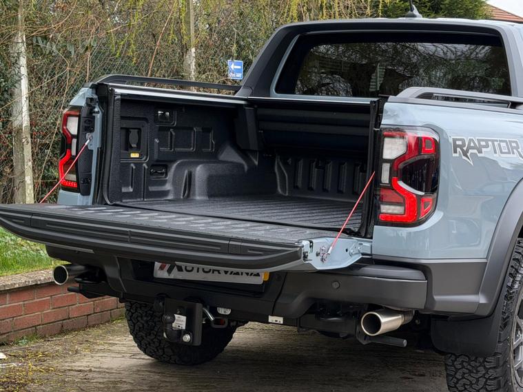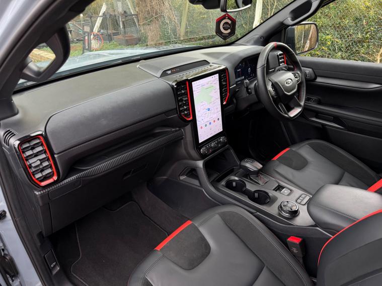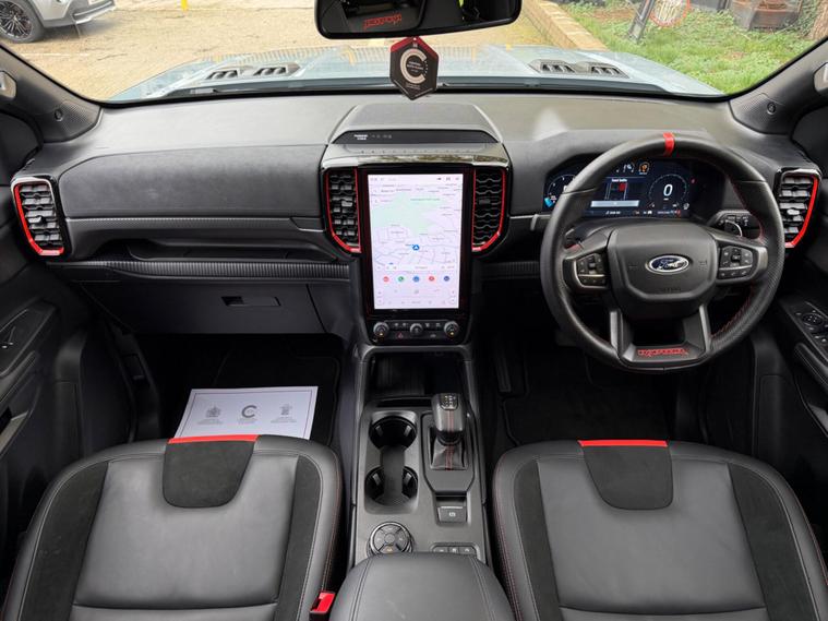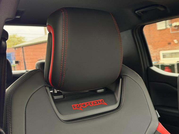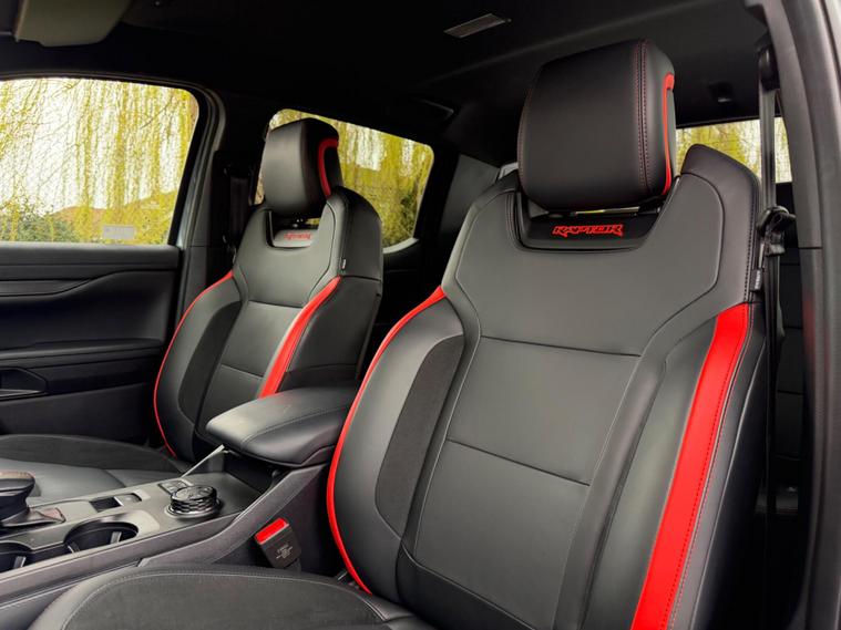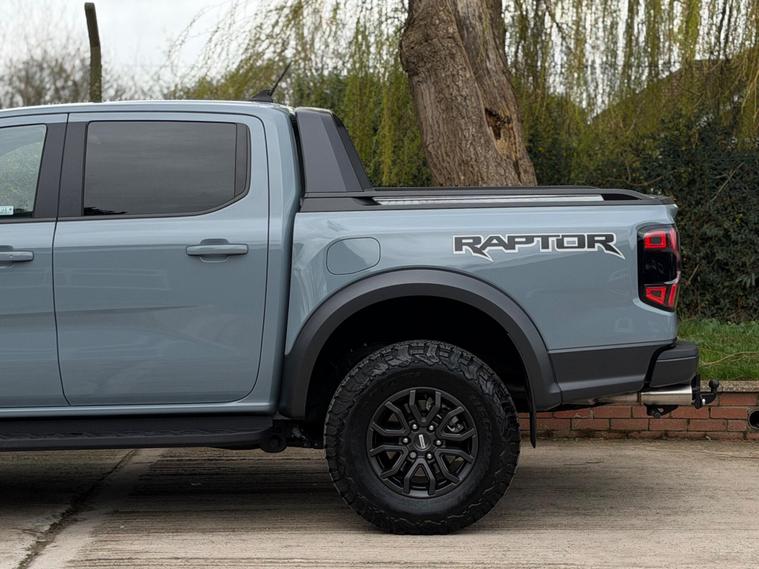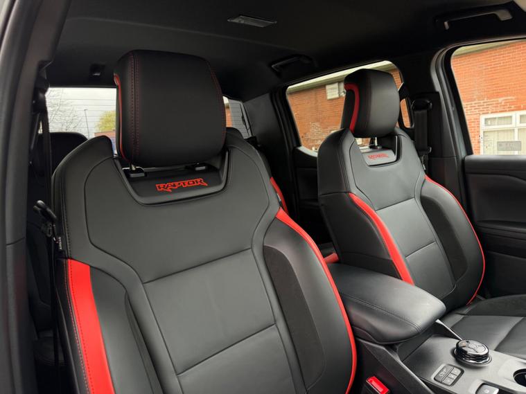 This Ford Ranger 3.0T V6 Raptor Auto 4WD Finished in Azure Grey and this vehicle comes with the following specification: 17in Alloy Wheels | Raptor Pack | Super Matte Leather - Ebony | 360 Lighting | Active Exhaust System | Exposed Dual Exhaust Tips | Extra Large Wheelarch Flares | Heated Steering Wheel | Heavy Duty Terrain Pack | Privacy Glass | Performance Suspension | Technology Package 73 | Thatcham Alarm |Thatcham Security System | Navigation | Bluetooth Audio & Connectivity | DAB & Radio | Apple CarPlay | Wireless Charging | 1 Owner From New | Electric Tow Cover | 2 Keys