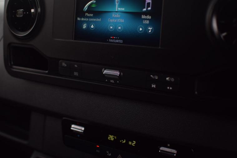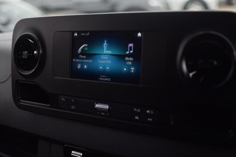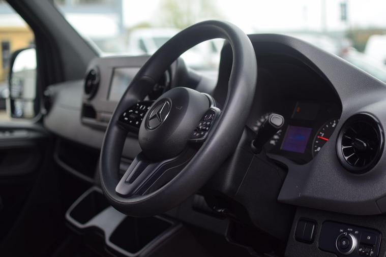 This 2023 Mercedes Benz Sprinter 315 CDI Premium is a pristine example, having had only one owner from new and boasting a clear vehicle history check. This L3 H2 Euro 6 compliant model features a powerful 148 bhp 2.0L diesel engine and comes equipped with the Premium trim, offering a leather covered steering wheel for enhanced comfort. Connectivity is seamless with a USB C and Bluetooth interface, WIFI hotspot, Apple CarPlay, Android Auto, and a DAB radio. For convenience and safety, it includes the Lighting Headlight Assistant with automatic headlights and a Parking Package with a reversing camera and rear parking assistance.The generous cargo volume of 14000 litres makes this Sprinter an exceptionally practical choice for a wide range of commercial needs. The inclusion of Active Distance Assist DISTRONIC demonstrates a higher level of advanced driver assistance compared to many similar vehicles, providing adaptive cruise control for more relaxed journeys. This combination of a well maintained, single owner vehicle with its extensive feature set and impressive cargo capacity positions it as a superior option in its class..