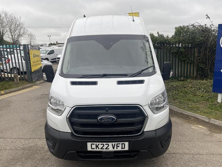 This 2022 Ford Transit 2.0 350 EcoBlue Trend RWD L4 H3 Euro 6 (s/s) 5dr boasts a full service history and has had only one owner from new, with its last service completed at 73, 900 miles. This robust 2.0L diesel engine variant, the 350 Trend, is Euro 6 compliant and comes with a 3 month warranty and 12 months MOT provided on purchase. Notable features include 236 degree opening rear cargo doors, front and rear parking aid with front fog lamps, and Bluetooth connectivity. The door mirrors are equipped with a blind spot eliminator and integrated side indicator for enhanced visibility.With an impressive cargo volume of 14, 100 litres, this Transit offers exceptional space for your needs, highlighting its advantage over similar vehicles. Its towing weight of 2570 kg further demonstrates its capability and versatility. The inclusion of parking assistance sensors front and rear, along with BLIS (Blind Spot Assistance), makes manoeuvring and navigating busy areas significantly easier and safer, setting it apart from other vans.Transmission (Manual), Trim Type (Cloth), Quick Clear Screen , Audio (DAB Radio), Phone (Bluetooth), Multi Func Steering wheel, Cruise Control, Side Mirrors (Electric), Auto Headlights, Front Fogs, Engine Bay Condition (Not Applicable), Parking Sensors (Front And Rear).