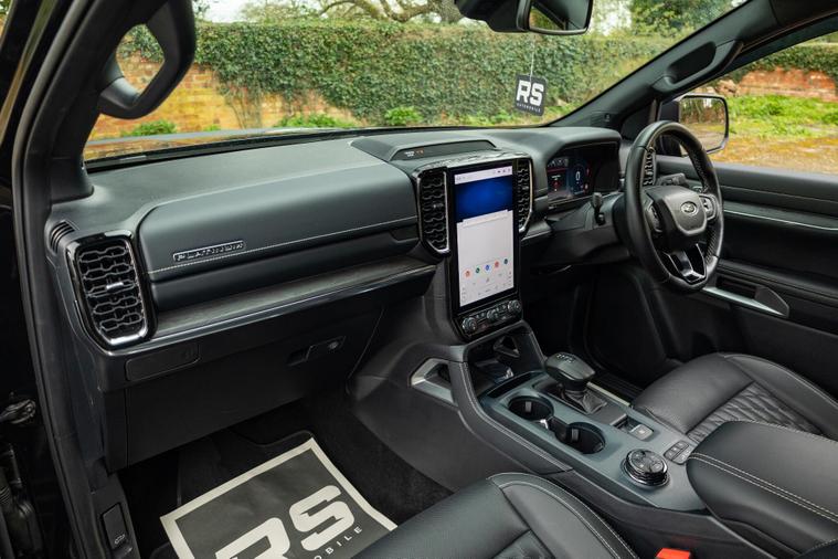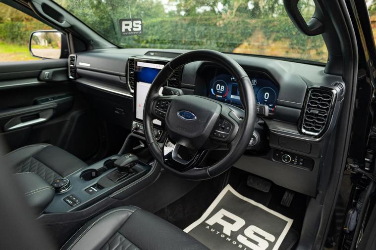 ELECTRIC SHUTTER, THE FORD RANGER 2024 MODEL IS A ROBUST AND CAPABLE 4X4 VEHICLE, BOASTING A 3.0L DIESEL ENGINE AND A FOUR WHEEL DRIVE DRIVETRAIN. THIS IMPRESSIVE DERIVATIVE, THE 3.0 TD V6 ECOBLUE PLATINUM AUTO 4WD EURO 6 (S/S) 4DR, IS PART OF THE ESTEEMED PLATINUM TRIM, WHICH OFFERS A WEALTH OF PREMIUM FEATURES. WITH A FULL SERVICE HISTORY AND A MERE 2500 MILES ON THE CLOCK, THIS VEHICLE HAS BEEN WELL CARED FOR BY ITS SOLE OWNER. THE RANGER IS ALSO EQUIPPED WITH A COMPREHENSIVE TECHNOLOGY PACKAGE 73, WHICH INCLUDES ADVANCED SAFETY FEATURES SUCH AS BLIND SPOT ASSISTANCE AND A 360-DEGREE CAMERA SYSTEM, AS WELL AS A PREMIUM BRANDED SOUND SYSTEM AND WIRELESS PHONE CHARGING.THIS EXCEPTIONAL VEHICLE IS POWERED BY A 3.0L DIESEL ENGINE, PRODUCING A NOTABLE 237 BHP, MAKING IT A FORCE TO BE RECKONED WITH ON THE ROAD. ITS IMPRESSIVE TOWING CAPACITY OF 3500 KG MAKES IT AN IDEAL CHOICE FOR THOSE WHO NEED TO TRANSPORT HEAVY LOADS. THE RANGER'S EURO 6 EMISSION CLASS ENSURES A MORE ENVIRONMENTALLY FRIENDLY DRIVING EXPERIENCE. WITH ITS LOW MILEAGE AND SINGLE OWNER, THIS VEHICLE IS A RARE FIND. THE RANGER'S IMPRESSIVE SPECIFICATION, INCLUDING ITS ADVANCED SAFETY FEATURES AND PREMIUM SOUND SYSTEM, SETS IT APART FROM OTHER SIMILAR VEHICLES IN ITS CLASS, MAKING IT A COMPELLING CHOICE FOR THOSE SEEKING A RELIABLE AND FEATURE-PACKED 4X4..