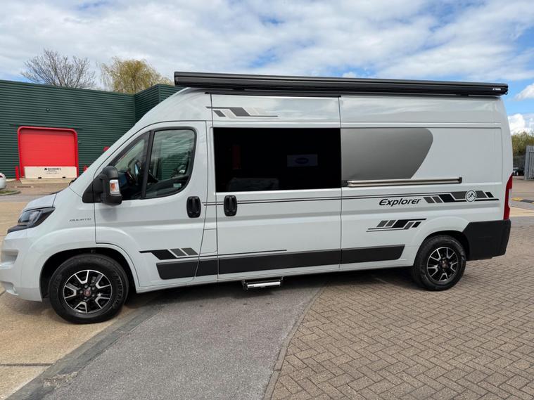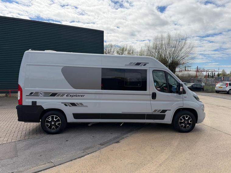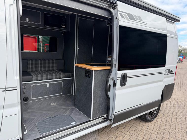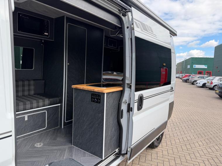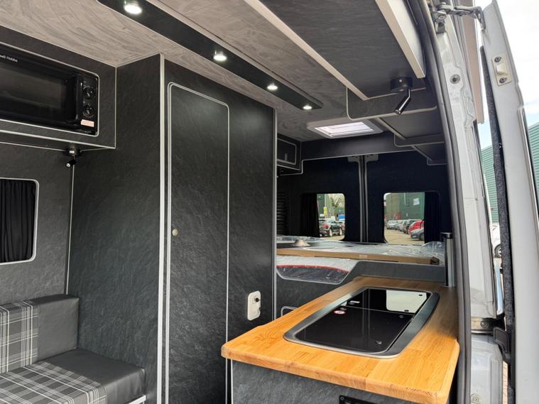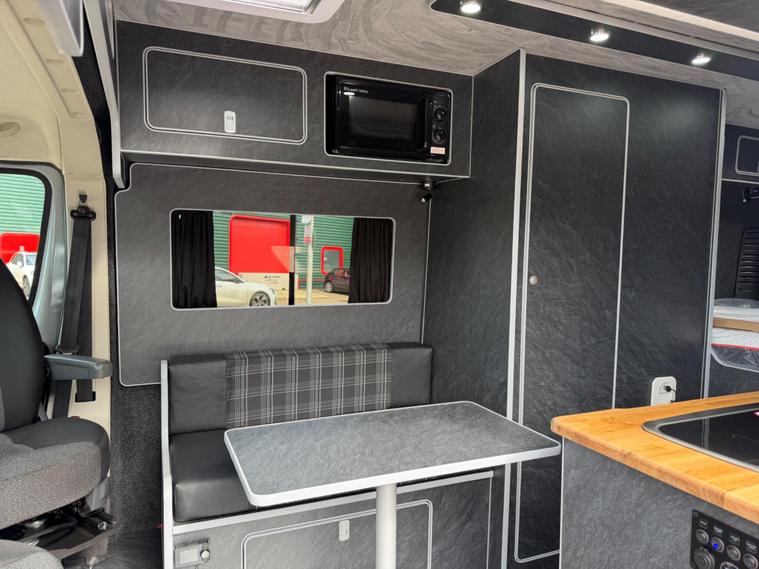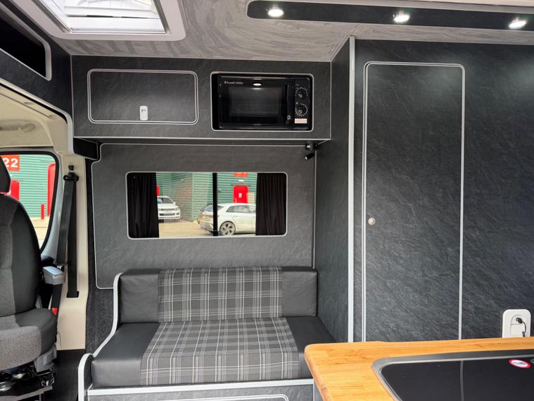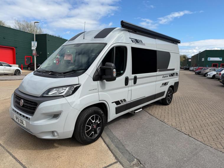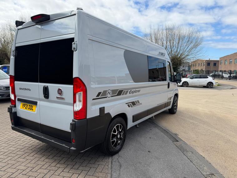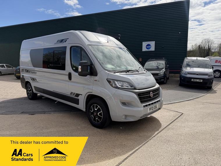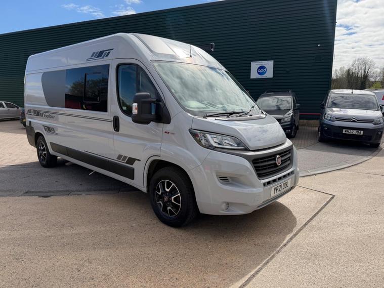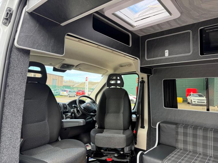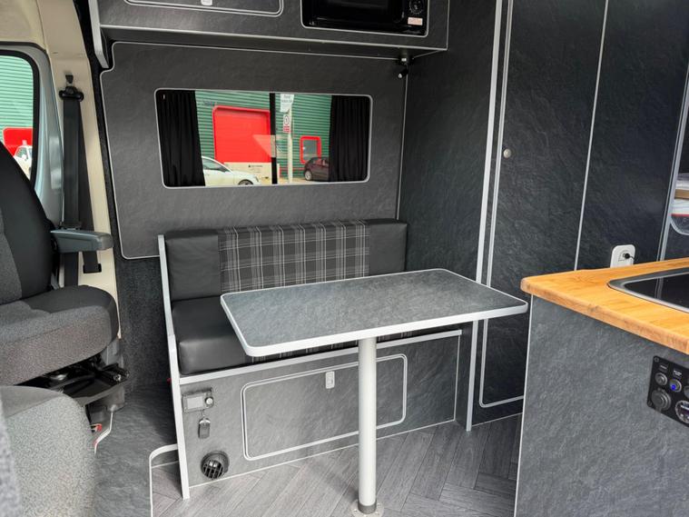2021 Fiat Ducato 2.3tdi 140bhp 6 speed manual Lwb (L3H2) van with 98k this is a one owner van in a very rare stunning light grey that comes fully loaded. The van itself runs and drives extremely well and comes with service history including just having a service and mot till April 2027. The van comes with 2 keys and is in stunning condition throughout.This has just had a brand new 2berth conversion done to a great standard with the following: insulated/carpeted, roof LED lighting, kitchen unit with Oak work top with built in sink/twin hob unit, Compressor fridge, large gas safe, fully black curtains, leisure battery with Victron split charging system, 240v hook up with Victron blue smart battery charging system, Victron linx power distributor, USB sockets, 240v sockets, Victron Solar panel system, 2x rear skylights with built in blinds, removable table, rear seating, 2x swivel seats, Thetford flush toilet, 17L microwave, diesel heating system, Thetford pull out step, full size wind out awning with LED lighting, In the rear of the van there is a Full seize 6ft / 4ft fixed rear bed with memory foam mattress.This is a stunning camper / Day van thats ready to explore. If you would prefer this as a 3 seater in the cab this is something we can do upon request you would however lose the ability to swivel the seats. This comes habitation checked to confirm it’s Gas and electric systems safe..