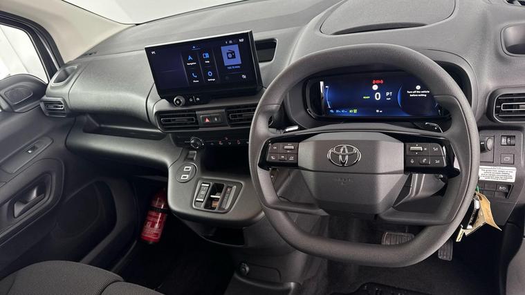 This 2024 Toyota PROACE CITY 50kWh Icon Short Panel Van Auto SWB 6dr boasts exceptionally low mileage, having covered just 2500 miles, and comes with a full service history and a 12 month warranty, having had only one owner. As a Toyota manufacturer approved vehicle, this electric van offers peace of mind. It features Bluetooth connectivity for seamless calls and audio streaming, front and rear parking sensors, and a reversing camera to assist with manoeuvring.The PROACE CITY Icon is powered by an electric motor delivering 134 bhp, with a 50 kWh battery offering a maximum range of 171 miles when new. Charging is convenient, with a full charge at home taking approximately 7 hours and 30 minutes using a 7kW charger, while rapid public charging can take the battery from empty to 80% in just 30 minutes. These specifications demonstrate its efficiency and practicality compared to similar vehicles..