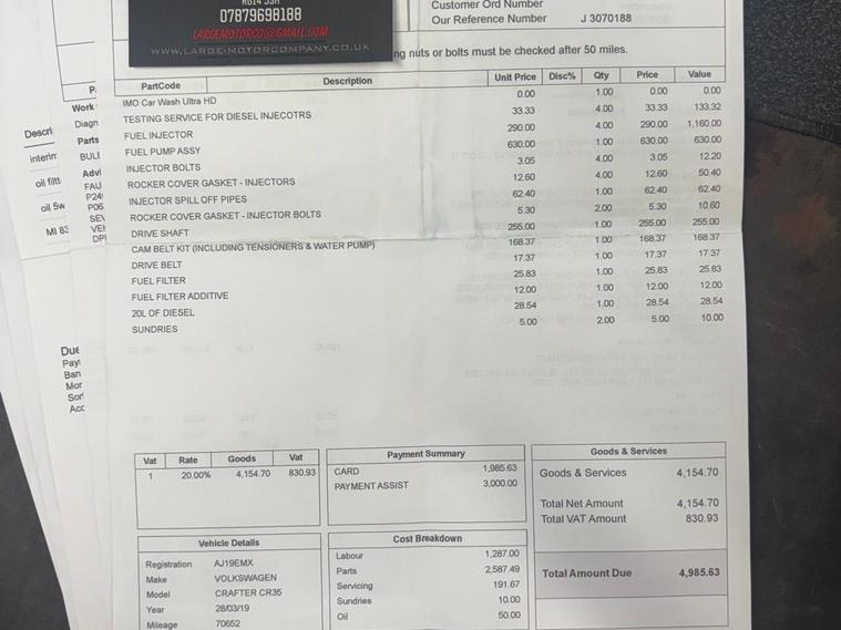 This 2019 Volkswagen Crafter boasts a full service history with its last service completed on 2026 01 15 at 81, 000 miles, ensuring excellent provenance. This TDI CR35 Trendline model features a powerful 140 bhp 2.0 litre Euro 6 diesel engine and a manual transmission, offering a towing weight of 3000 kg. For your convenience, it includes front and rear parking sensors with parking assistance, two 12V sockets in the front, and voice control. The Composition Media system with an 8 inch touch screen and DAB+ radio, along with Bluetooth connectivity, keeps you informed and entertained. A 3 month warranty and 12 months MOT are provided on purchase.The 140 bhp engine power in this Volkswagen Crafter demonstrates its capability, indicating it offers a more robust performance compared to other similar vehicles. This Trendline derivative is equipped with features designed to enhance your driving experience and practicality. The inclusion of advanced parking assistance and a comprehensive infotainment system, including DAB+ and Bluetooth, further sets this Crafter apart, making it a well rounded choice for your needs..