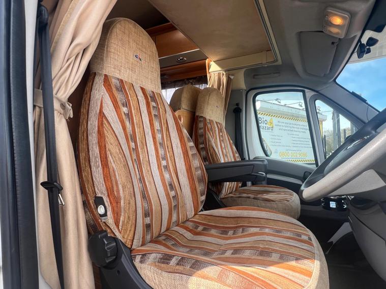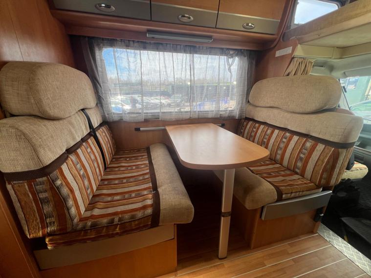 2012 CI Carioca 706 – 6 Berth – 59, 351 Miles – Excellent ConditionWelcome to the sale of this very popular 2012 CI Carioca 706 motorhome, built on the reliable Fiat chassis with a 2.3 diesel engine and 6-speed manual gearbox. This motorhome drives superbly and offers a smooth, comfortable and reliable touring experience.With 59, 351 miles and very good recent service history including a cambelt replacement, this motorhome has clearly been well maintained and is in superb condition inside and out.The vehicle will also come with a fresh MOT for the new owner.Key Information6 Berth6 SeatbeltsRight Hand Drive3, 500kg (Can be driven on a standard licence)Length: 6.99m59, 351 milesFresh MOT includedRecent cambelt replacementSolar system servicedFeatures & ExtrasSolar PanelsTV Aerial / Satellite SystemReverse CameraDash CamBike RackTow BarAlarm & ImmobiliserTruma Heating SystemHot Water SystemLayoutAt the rear of the motorhome is a large lounge/dining area with bench seating, providing plenty of space to relax. This area quickly converts into a large double bed.Moving forward, there is a spacious bathroom with separate shower and toilet.Opposite is a well-equipped kitchen featuring a 3-way fridge, gas hob, oven/grill, sink with mixer tap and good preparation space.The centre dinette provides another dining area which also converts into an additional bed.Above the cab is a large over-cab double bed with easy access and good headroom.OverallThis is a spacious, very clean and well-maintained family motorhome, ready to drive away and enjoy holidays immediately.No damp and can be professionally inspected for the buyer for peace of mind..