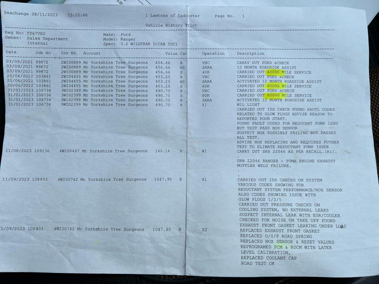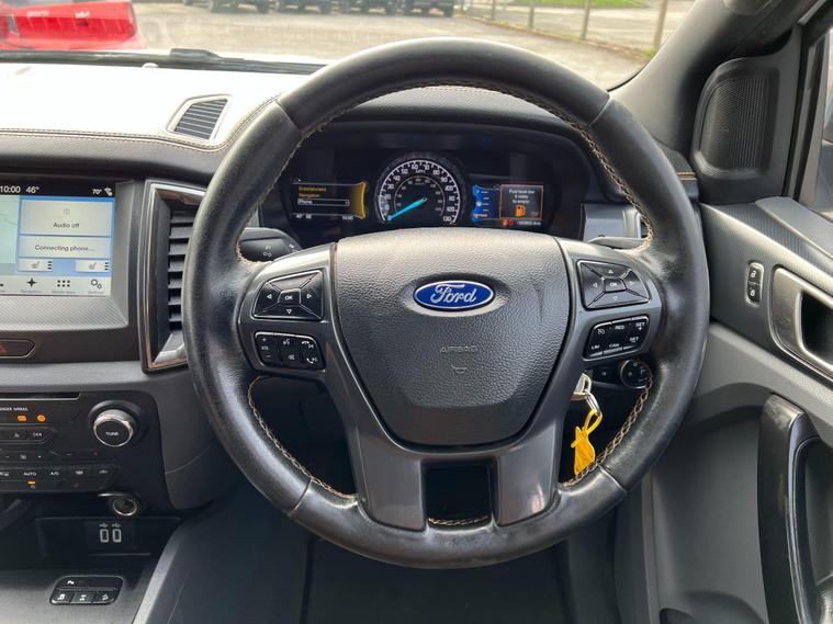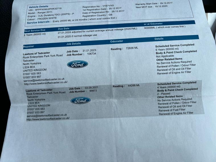 This 2017 Ford Ranger Wildtrak offers a partial service history, providing a good overview of its maintenance. This 4x4 automatic pickup is equipped with a robust 3.2 litre TDCi diesel engine and boasts a substantial towing weight of 3500 kg, making it a capable workhorse. For added convenience, it features front and rear parking sensors with parking assistance, automatic headlights, and a Bluetooth handsfree phone system. A fixed towbar is also included, further enhancing its utility.The Wildtrak derivative of this Ranger is designed for both performance and practicality. Its four wheel drive system ensures excellent traction in various conditions, while the 3.2 TDCi engine delivers ample power. The inclusion of features like automatic headlights and Bluetooth connectivity demonstrates a thoughtful specification that sets it apart from other vehicles in its class, offering a more comfortable and connected driving experience..