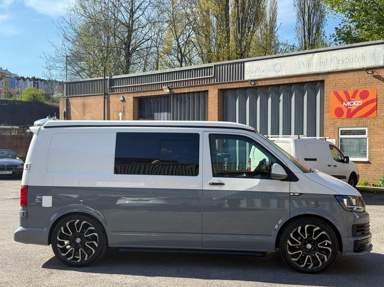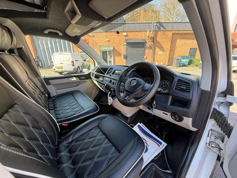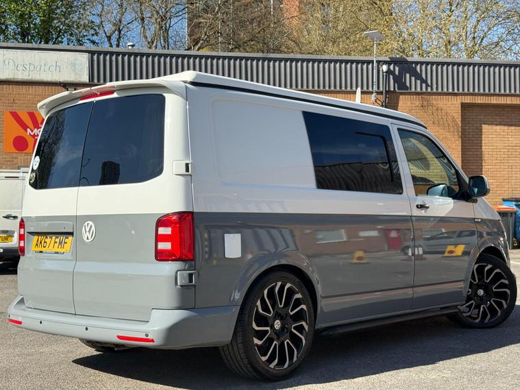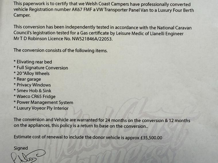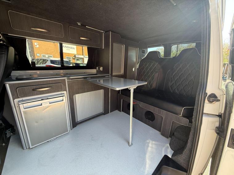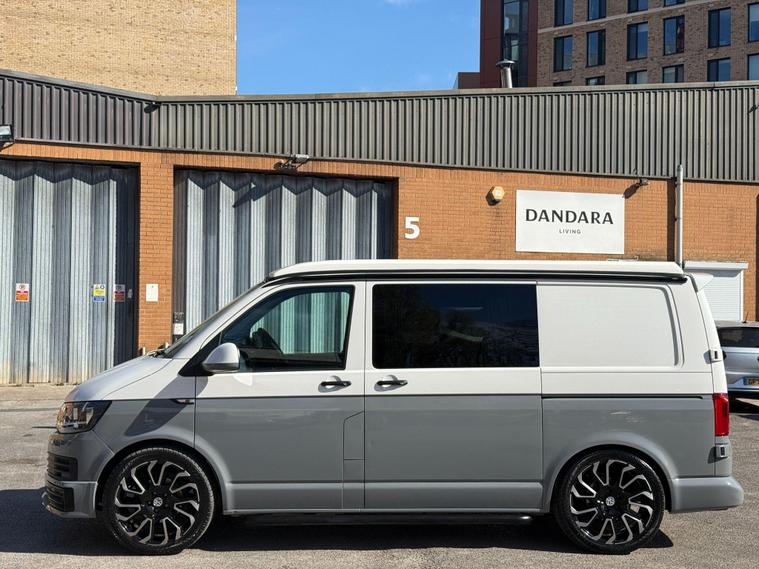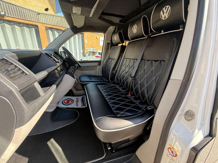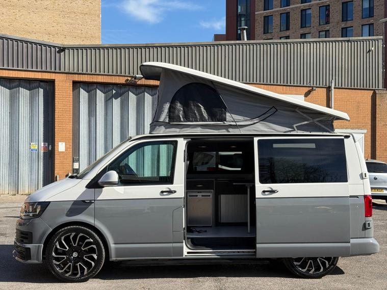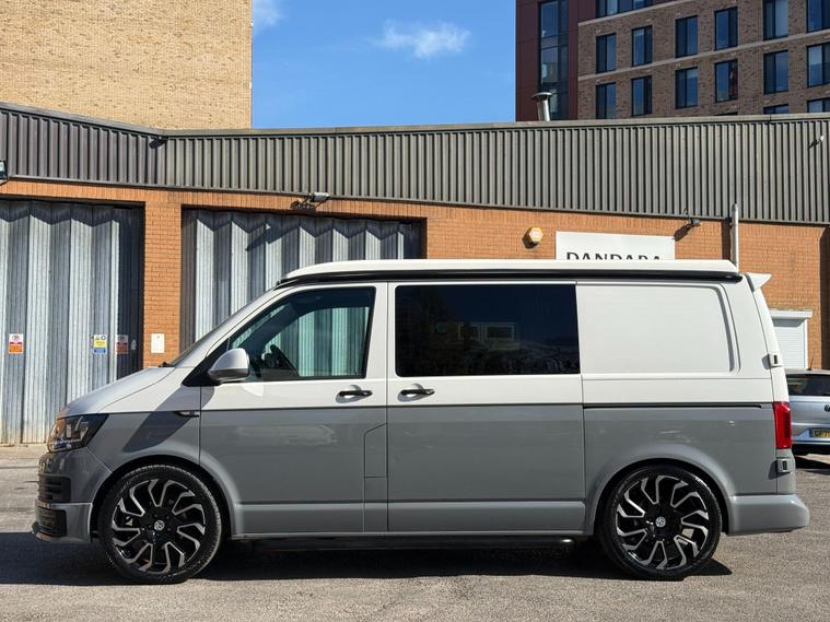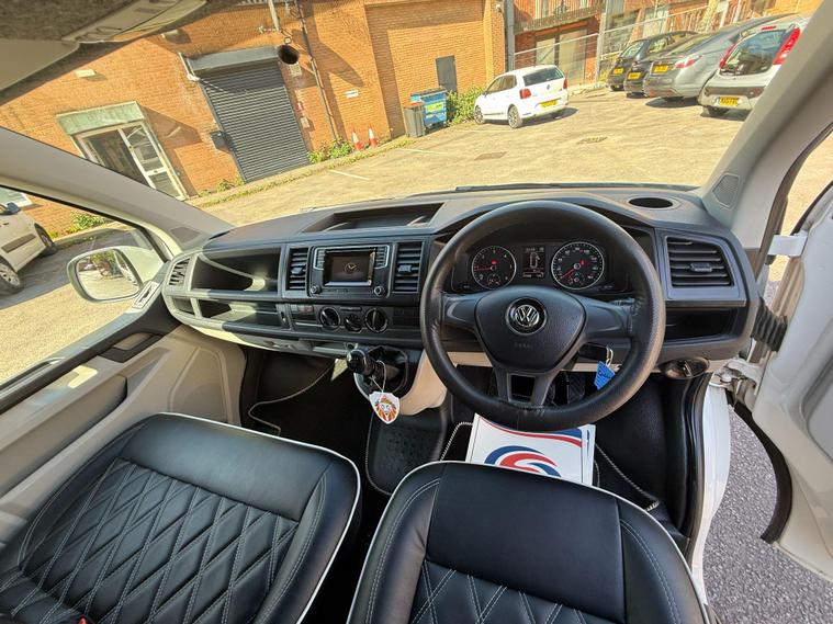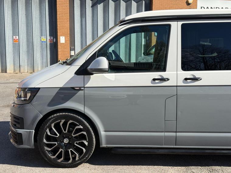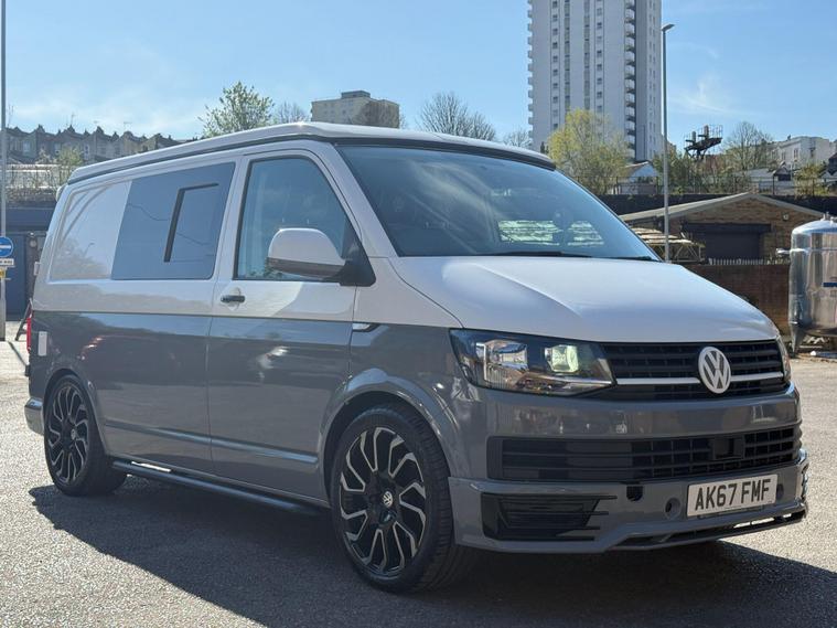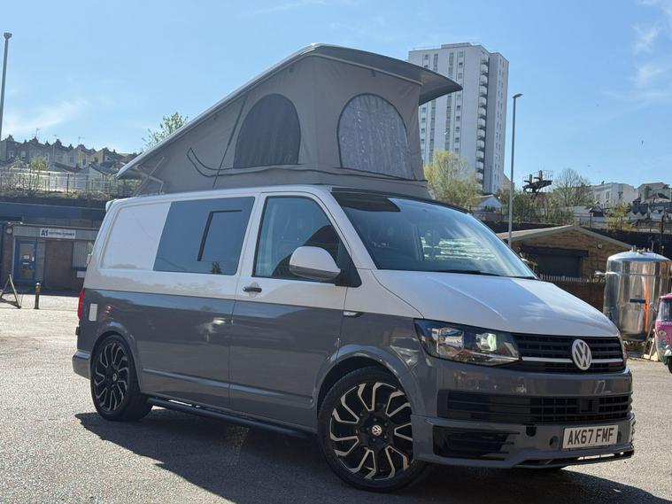 INCREDIBLY WELL LOOKED AFTER TRANSPORTER WHICH WAS CONVERTED BY WEST COAST CAMPERS IN 2022. PLEASE SEE PHOTOS FOR SPEC OF CONVERSION. CAPTAIN SEATS HAVE ALSO BEEN INSTALLED, SO THE TWO FRONT PASSENGER SEATS TURN AROUND AND FACE THE REAR. POP TOP, FULL LEATHER, CAMBELT DONE AND FULL HISTORY. EXCELLENTLY MAINTAINED AND REALLY LOOKS THE PART WITH THE TWO TONE PAINT FINISH. Powered by an efficient 2.0 litre diesel engine, meeting Euro 6 emission standards. It comes equipped with rear parking sensors, including a rear sensor parking assistance system, and Bluetooth hands free connectivity for your convenience..