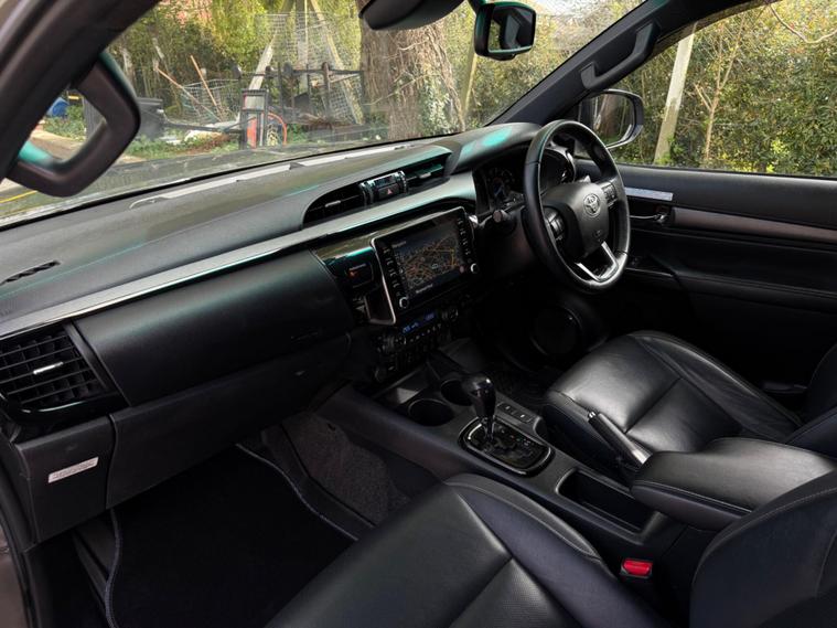 This Toyota Hilux 2.8 D-4D Invincible 4WD Finished in Metallic Bronze and this vehicle comes with the following specification: 18in Alloy Wheels | Black Leather | Heated Front Seats | Bluetooth Audio & Connectivity | DAB & Radio | Privacy Glass | Reverse Camera | Keyless Go & Entery | 2 Keys | Full Service History | No VAT | Navigation | 1 Owner from New | Heated Rear Seats.