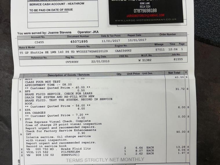 This Volkswagen Transporter Shuttle boasts a full service history, with its last service completed on 22nd December 2025 at 105, 113 miles & a cambelt & water pump done @ 92k in 2022 , offering excellent provenance. There is a recorded error on the mot history which we have a covering letter from the mot station confirming what details are an error etc , this can be viewed within the pictures of the service history. This 2010 registered 2.0 TD T30 SE L3 H1 4dr model is powered by a robust 2.0 litre diesel engine delivering an impressive 138 bhp. As a T30 SE variant, it combines practicality with a comfortable driving experience, and will be supplied with 12 months MOT for your peace of mind, alongside a 3 month warranty.The 138 bhp engine output is a notable highlight, indicating a strong performance that sets this Transporter Shuttle apart from others with lower power ratings. This vehicle is well maintained, as evidenced by its comprehensive service record, ensuring it is ready for its next chapter. The T30 SE trim level provides a solid foundation for this versatile model, making it a reliable choice for a variety of needs..