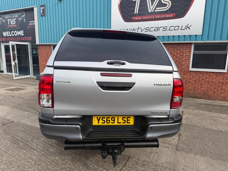 TOYOTA SERVICE HISTORY, FULL LEATHER, ALPHA CANOPY WITH GLASS SIDE WINDOWSThis 2019 Toyota Hilux Invincible X is a robust and capable vehicle, offering a 2.4 litre D-4D diesel engine paired with a smooth automatic transmission and a dependable four wheel drive system. As a Euro 6 compliant model, it benefits from low CO2 emissions, making it a more environmentally conscious choice. The Invincible X trim level ensures a premium experience, featuring a Dusk Sensor for automatic headlights, a convenient Keyless Entry System, and the intuitive Toyota Touch 2 infotainment system which includes Bluetooth connectivity and a rear parking camera. Further enhancing its practicality, this Hilux is equipped with rear parking sensors and LED headlights for improved visibility.This particular Hilux Invincible X is designed for those who demand performance and versatility, boasting an impressive towing weight of 3200 kg. The inclusion of features like the automatic headlights, keyless entry, and the rear camera with parking assistance demonstrate a thoughtful approach to driver convenience and safety. These elements, combined with its Euro 6 rating and low CO2 emissions, position this 2019 Toyota Hilux as a superior option within its class, offering a blend of power, advanced technology, and efficiency for any task..