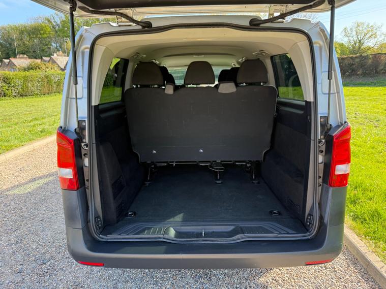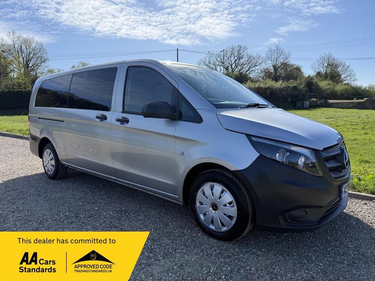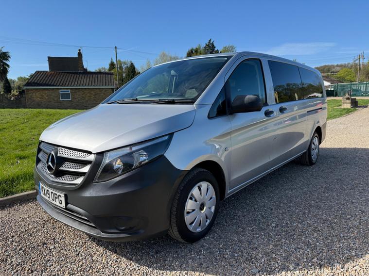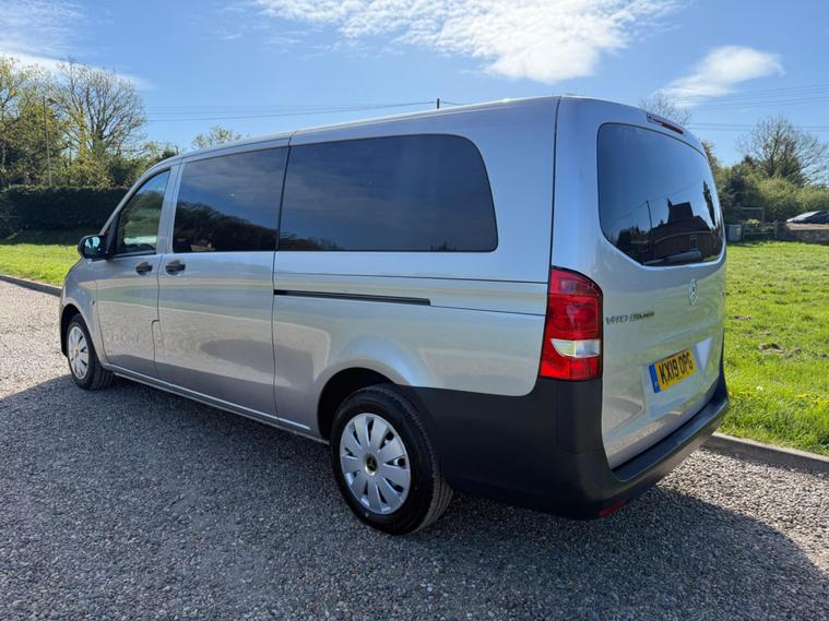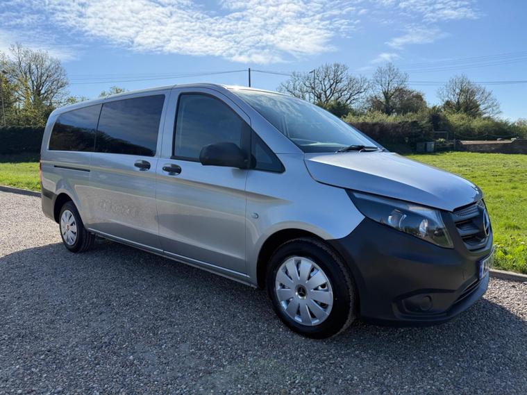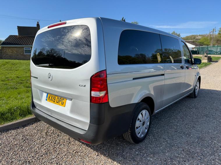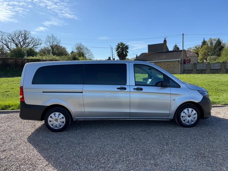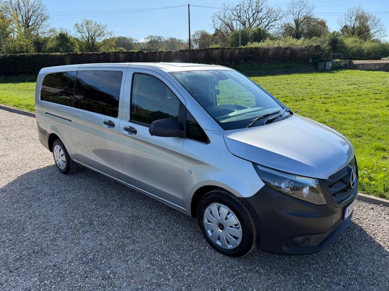 NO VAT TO PAY ON THIS OUTSTANDING CONDITION VITO XTRA LONG WHEEL BASE IN METALLIC SILVER, WAS PRIVATELY OWNED AND NEVER BEEN A TAXI, 9 SEATER, AIR CON, ELECTRIC WINDOWS, ELECTRIC MIRRORS, REVERSE CAMERA, BLUETOOTH, DAB RADIO, AUTO LIGHTS AND WIPERS, WILL COME FULLY SERVICED AND 3 MONTHS WARRANTY INCLUDED.