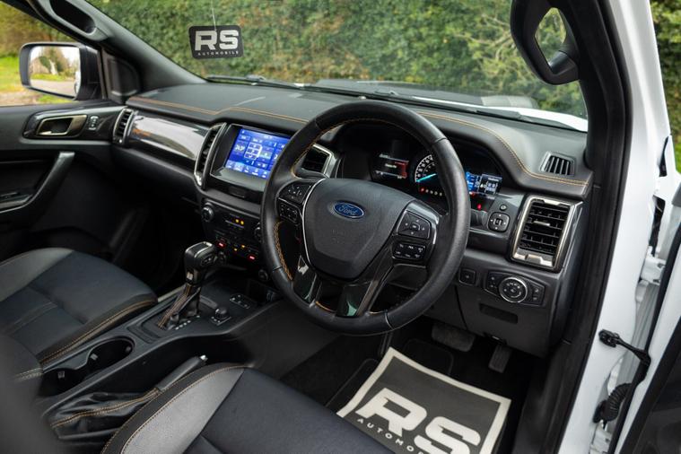 This 2023 Ford Ranger Wildtrak is a robust and capable vehicle, ready for any challenge. Powered by a 2.0 litre EcoBlue diesel engine and featuring a four wheel drive drivetrain, this Euro 6 compliant model offers impressive performance. The Wildtrak derivative comes equipped with a Trailer Tow Pack including a towbar, allowing for a substantial towing weight of 3500 kg. Further enhancing its practicality are LED headlights for superior visibility and rear parking sensors to aid manoeuvring.Experience convenience with passive keyless entry and start, allowing you to access and operate the vehicle without needing to take your keys out of your pocket. Inside, you'll find the Dual Control System EATC, providing climate control for a comfortable cabin environment. These features, combined with the Ranger's inherent strength and versatility, demonstrate its superiority in its class, offering a refined and highly functional driving experience for both work and leisure..