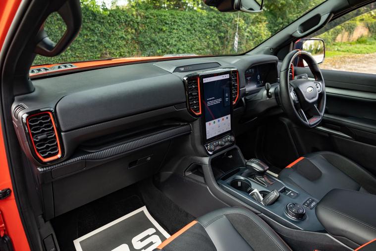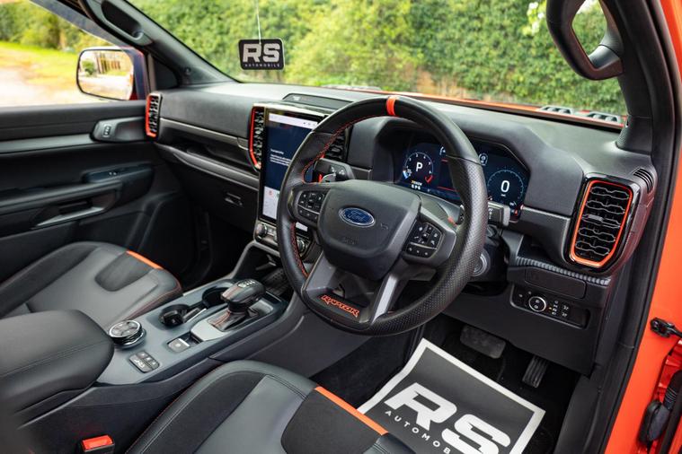 This 2025 Ford Ranger Raptor represents the pinnacle of performance and capability, boasting a powerful 3.0L V6 EcoBoost petrol engine delivering an impressive 288 bhp. As a 4WD Euro 6 compliant model, this automatic transmission vehicle is built for adventure while adhering to modern emission standards. The Raptor trim level ensures you experience the very best of Ford's engineering, with a suite of advanced features designed for both comfort and safety.This Ranger Raptor is equipped with a premium B&O Sound System, part of the ICE Feature Pack 106, ensuring an exceptional audio experience. For enhanced visibility and convenience, it features Level 3 LED headlights and a comprehensive Technology Package 73. This package includes BLIS (Blind Spot Assistance), Adaptive Cruise Control, automatic headlights, and a 360 degree camera system complemented by front and rear parking sensors. These advanced features collectively elevate the driving experience, offering superior awareness and control compared to other vehicles in its class..