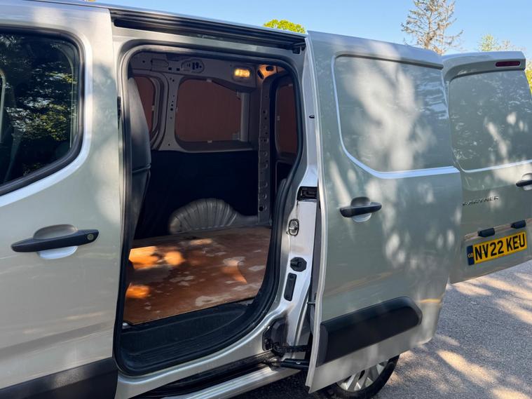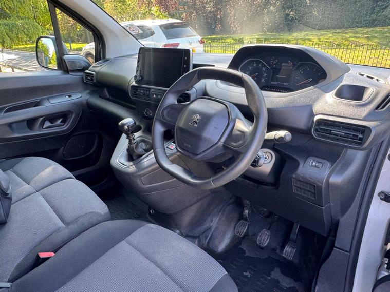 This 2022 Peugeot Partner van is a standout choice, boasting a full service history and having had only one owner from new. This Professional Premium Standard Panel Van SWB is powered by an efficient 1.5 litre BlueHDi diesel engine, meeting Euro 6 emissions standards. It comes equipped with height adjustable halogen headlights that automatically illuminate, along with daytime running lights. Inside, you'll find the innovative PEUGEOT i Cockpit featuring a head up display and a compact steering wheel. Entertainment and connectivity are handled by an 8 inch capacitive colour touchscreen with Connect DAB radio, Bluetooth handsfree and a USB socket, while air conditioning ensures a comfortable cabin. For ease of parking, rear parking sensors are also included.This Peugeot Partner offers excellent running costs, achieving an impressive 56 miles per gallon and benefiting from low CO2 emissions, making it a more economical choice than many similar vans. Its generous 3900 litre cargo volume provides ample space for your business needs. Furthermore, its low insurance group rating means it is also cost effective to insure. A 12 month MOT is provided on purchase, giving you peace of mind..