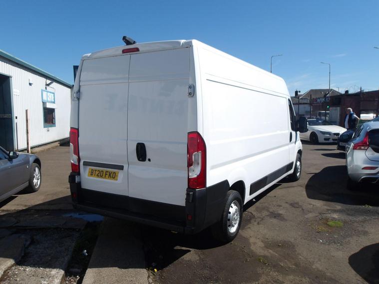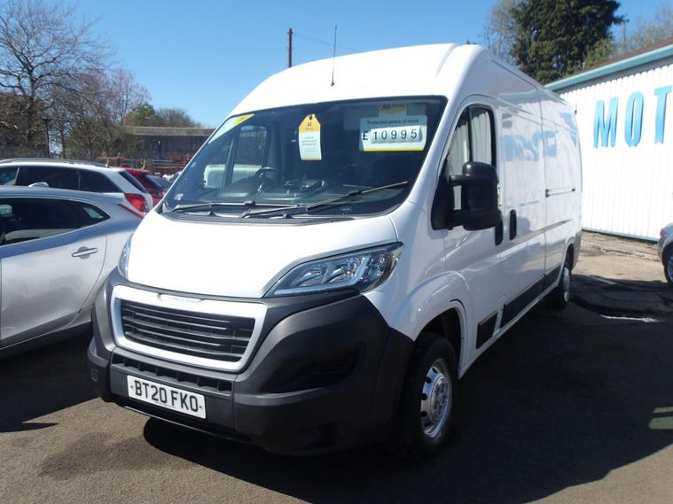 This 2020 Peugeot Boxer is a rare find, having had only one owner since new. This L3 H2 Professional van is powered by an efficient 2.2 litre BlueHDi diesel engine, meeting Euro 6 emission standards. It comes equipped with a Professional trim level, featuring a touch screen navigation pack with Bluetooth connectivity and manual air conditioning for the cab area. For added convenience and safety, it includes rear parking sensors with parking assistance.The Peugeot Boxer offers an impressive cargo volume of 13, 000 litres, making it ideal for transporting large loads. Its low CO2 emissions highlight its environmental consideration, and it also benefits from a low insurance group, indicating lower running costs. These factors combined suggest this Boxer is a more economical and practical choice compared to similar vehicles on the market..