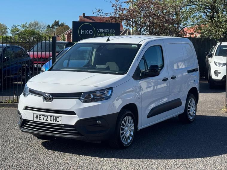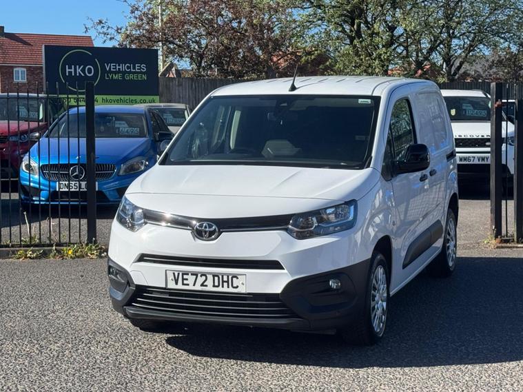 Welcome to HKO Vehicles Lyme Green – we are pleased to offer this excellent 2023 Toyota ProAce City 1.5 BlueHDi Icon SWB, finished in clean white and presented in very good condition throughout. This is a modern, practical, and efficient compact panel van, ideal for business use with low running costs and strong reliability.This vehicle has covered 36, 000 miles and is a one-owner example, clearly showing it has been well maintained. Powered by the efficient and dependable 1.5 BlueHDi diesel engine producing 100bhp, paired with a manual gearbox, it delivers excellent fuel economy and a smooth, comfortable drive. Being Euro 6 compliant, it meets the latest emission standards.As the Icon specification, this ProAce City comes with a great level of factory equipment, including:* Apple CarPlay and Android Auto* Touchscreen infotainment system* Bluetooth connectivity* Air conditioning* Cruise control and speed limiter* Rear parking sensors* Multi-function steering wheel* Electric windows and mirrors* Sliding side loading door* Twin rear doors for easy access* Ply-lined load areaThe ProAce City is well known for its practicality, reliability, and ease of driving, making it a great choice for trades and business users.This van will be supplied with a 12 Months MOT and includes a 3 Months Warranty for added peace of mind.We are proud to be an AA Approved Dealer, ensuring all vehicles are thoroughly inspected and prepared to the highest standard prior to sale.Finance available – instant decision, competitive rates, and drive away today. Please apply via our website or call us on (01260) 544944 to discuss a tailored finance package.A fantastic opportunity to own a one-owner Toyota ProAce City Icon, offering modern features, efficiency, and excellent value. Contact HKO Vehicles Lyme Green today to arrange a viewing or test drive..