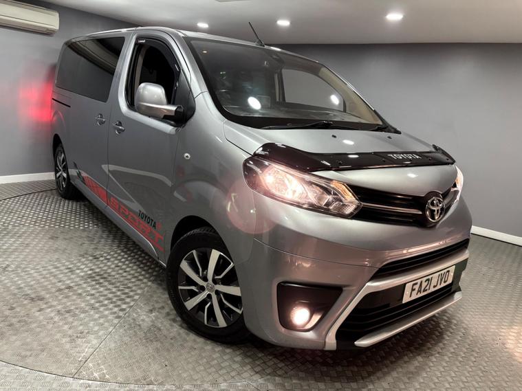 This Toyota PROACE Verso will have a fresh service and an MOT as part of our internal preparation, finished in metallic grey with black cloth interior. It comes equipped with a suite of advanced features including Apple CarPlay and Android Auto for seamless smartphone integration, Smart Entry and Push Button Start for convenient access, and the comprehensive Toyota Safety Sense system which includes Adaptive Cruise Control.Further enhancing your driving experience, this PROACE Verso includes a Head Up Display to keep essential information in your line of sight and a Parking Pack with rear sensors to aid manoeuvrability. These notable features, combined with its Euro 6 emissions classification, demonstrate a commitment to both advanced technology and responsible motoring, setting this versatile MPV apart.SpecificationsThe data displayed above details the usual specification of the most recent model of this vehicle. It is not the exact data for the actual vehicle being offered for sale and data for older models may vary slightly. We recommend you check the vehicle details with your sales advisor before you buy..